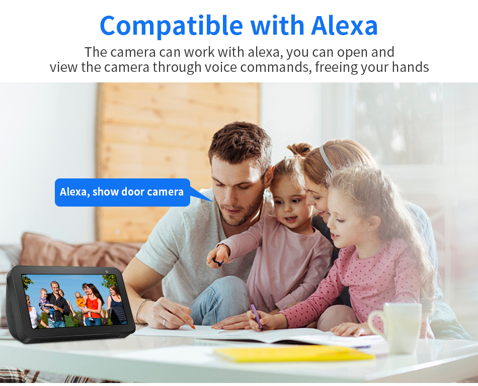 The security camera can work with alexa , you can open and view the camera throgh voice command, free your hands,