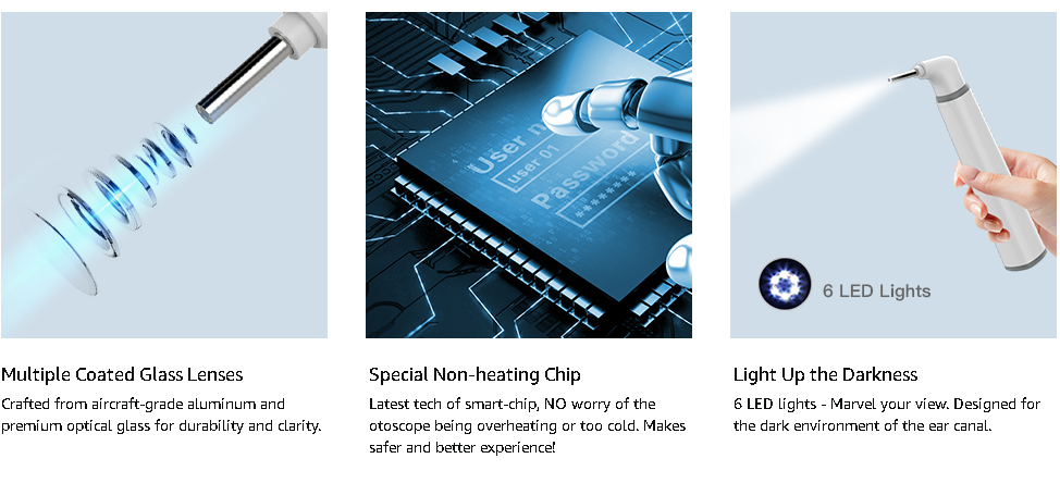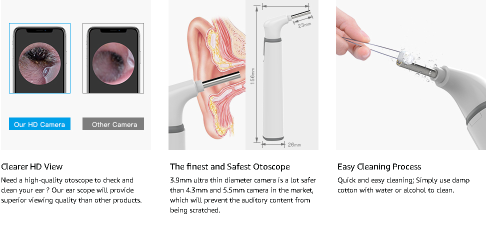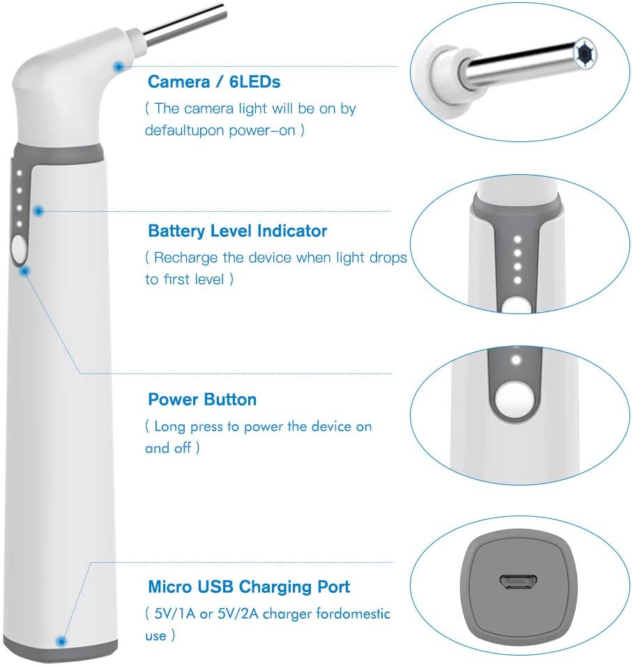 【Многоцелевой 5-в-1 】 Вы можете проверять, чистить и осматривать ухо, нос, рот, горло и даже своих домашних животных. Этот ушной прицел не только удобен для взрослых, детей и домашних животных, но также позволяет снимать фотографии и видео и использовать режим сравнения изображений.
