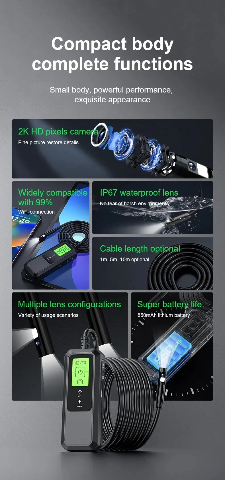 • Водонепроницаемость 8 мм:Благодаря водонепроницаемой конструкции 8 мм эта эндоскопическая камера может использоваться в различных средах, включая влажные или влажные условия.