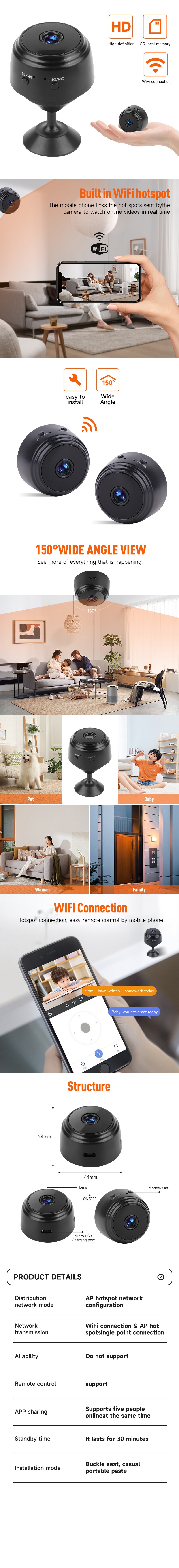 Беспроводная камера видеонаблюдения A9 HD Wifi Smart Monitor, 1080 P (Full-HD), тип штекера:USB