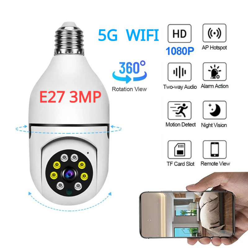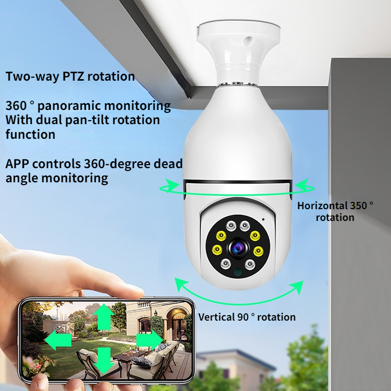 E27 Лампа Беспроводная камера наблюдения 5G Wi-Fi Ночное видение Автоматическое отслеживание людей Домашний панорамный монитор видеонаблюдения Защитный монитор