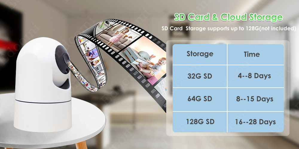 * Встроенный слот для карты Micro SD, интеллектуальная внутренняя камера может записывать события движения и сохранять именно моменты локально на карте micro SD (до 128 ГБ, не входит в комплект) для последующего воспроизведения.
