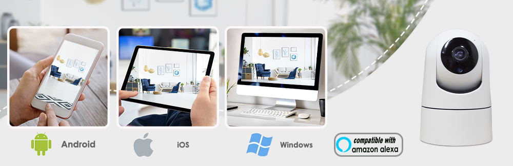 Эта камера видеонаблюдения поддерживает Android, iOS, Windows. Работает с голосовым управлением Alexa.