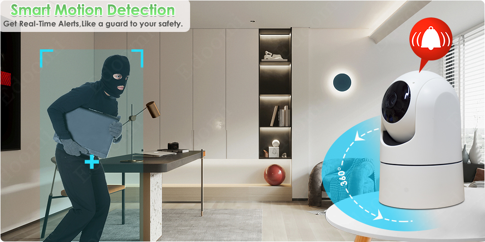 * Когда вор придет в зону наблюдения, камера отправит Push-уведомления на ваш мобильный телефон.