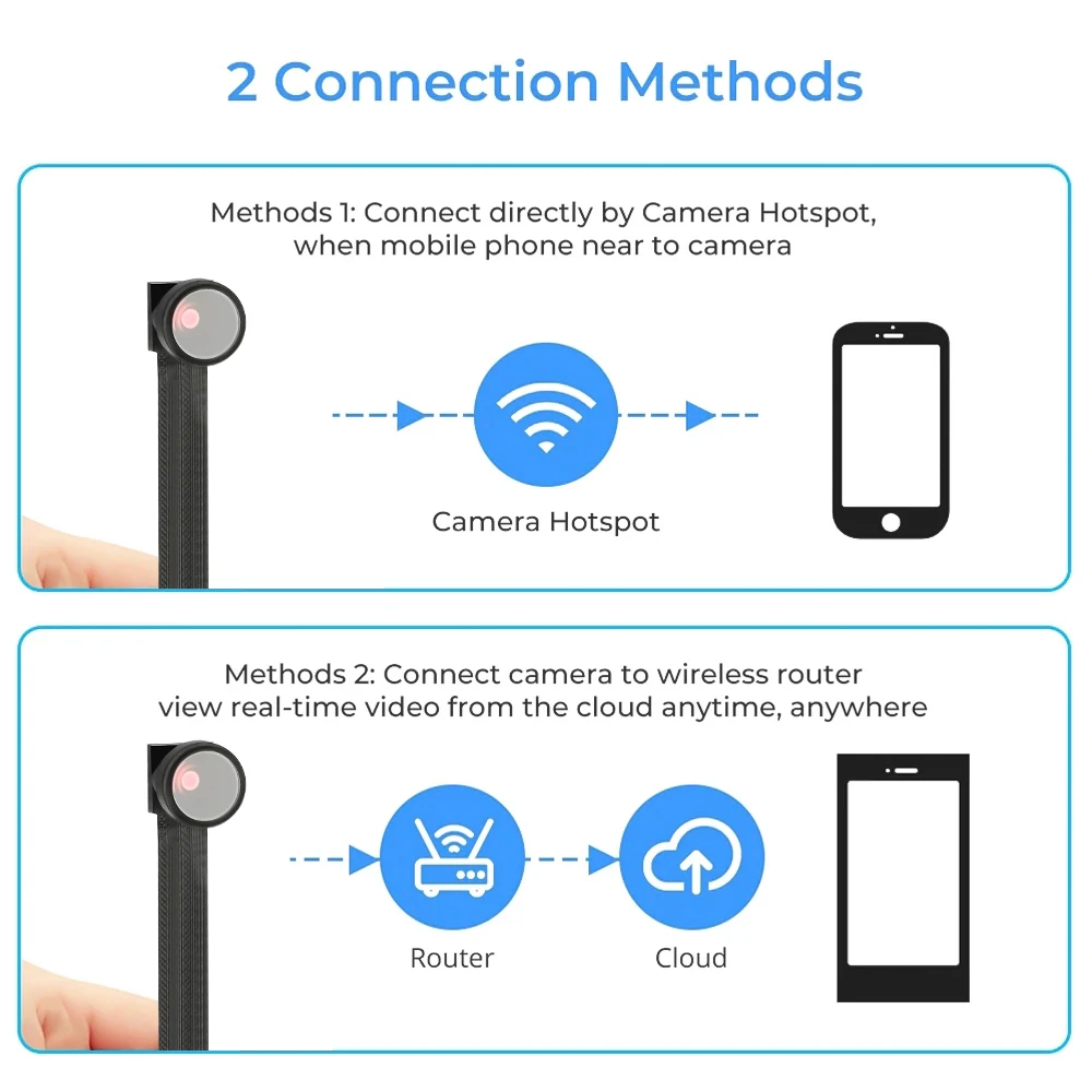5. [Удаленный Просмотр] Подключите мини-камеру к Wi-Fi маршрутизатора, и вы сможете получить удаленный доступ к камере. Используя бесплатное приложение для камеры, вы можете просматривать свой дом, детей, домашних животных и няню в любое время и в любом месте на своем телефоне.