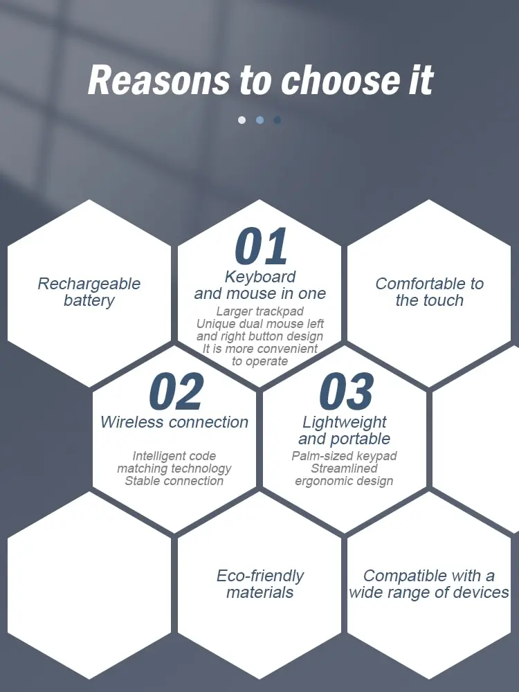 • Беспроводное соединение :Клавиатура подключается к вашему компьютеру по беспроводной сети, освобождая место на столе и устраняя необходимость в грязных шнурах.