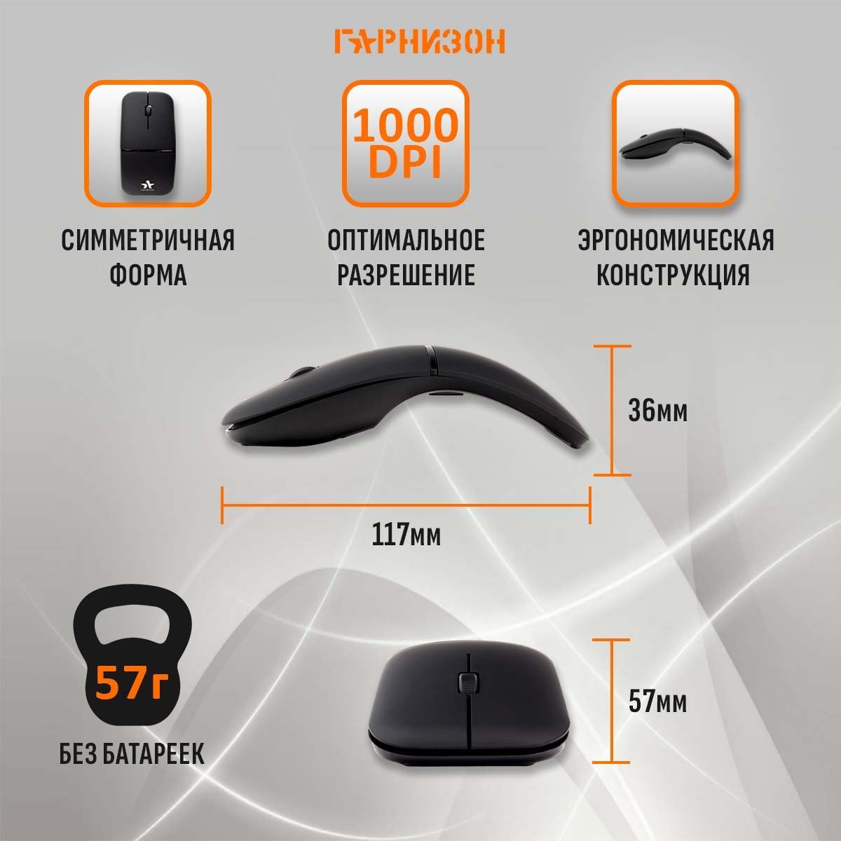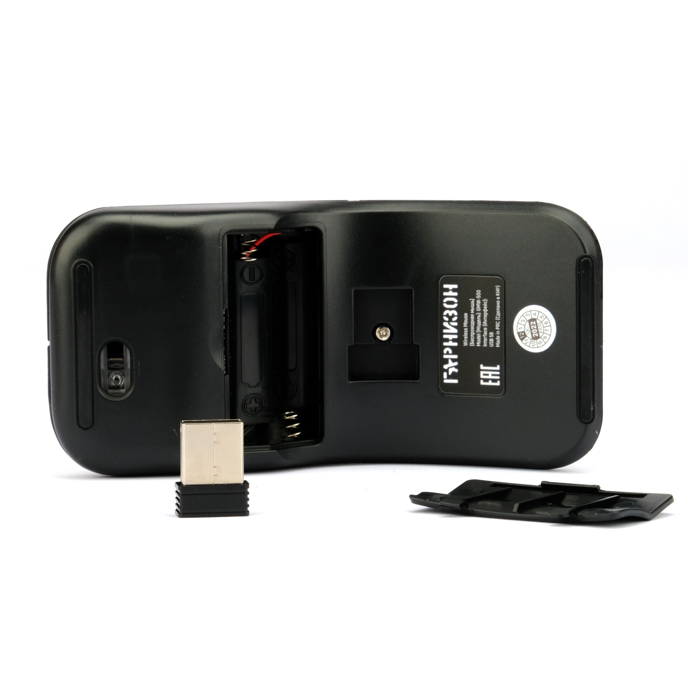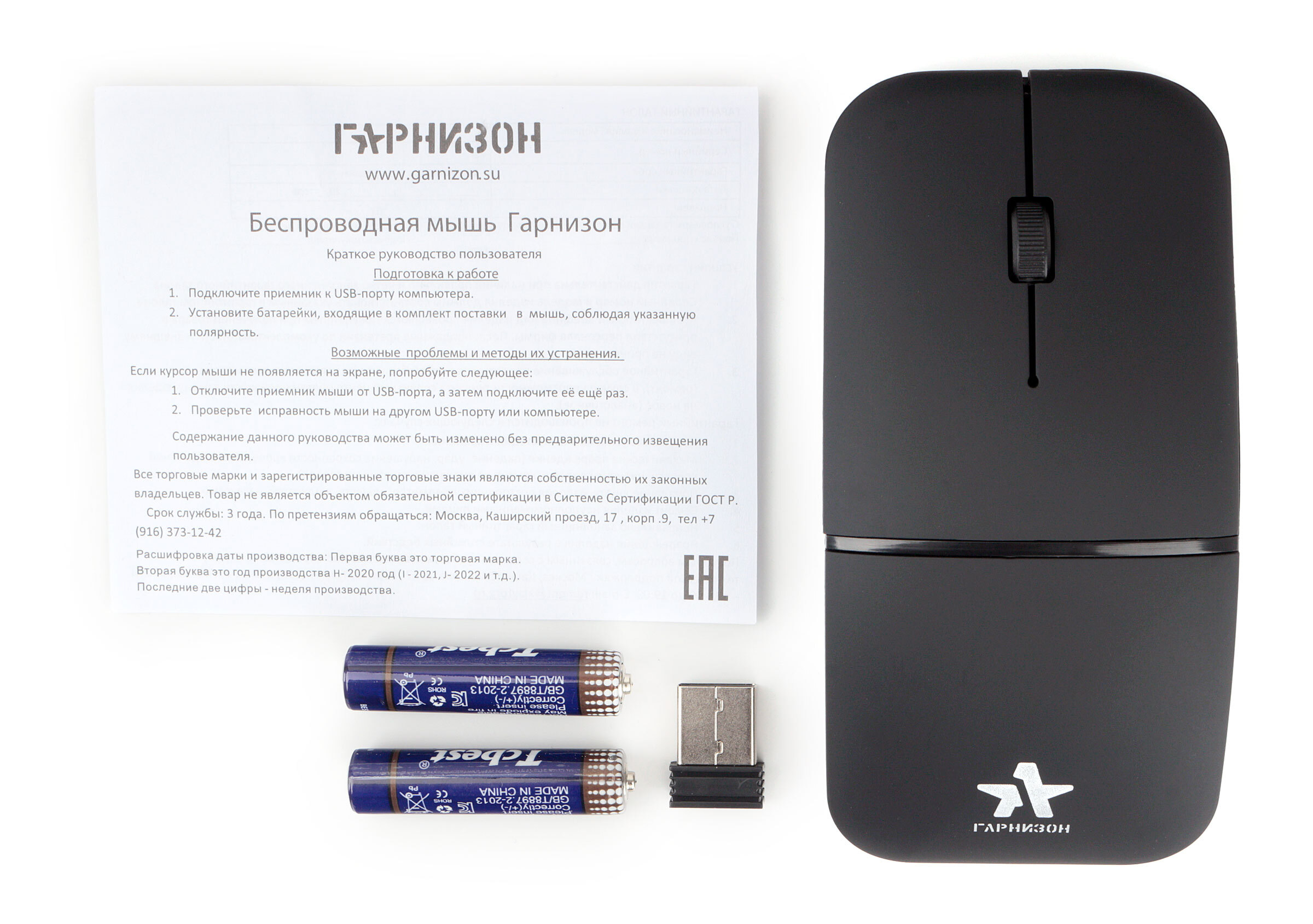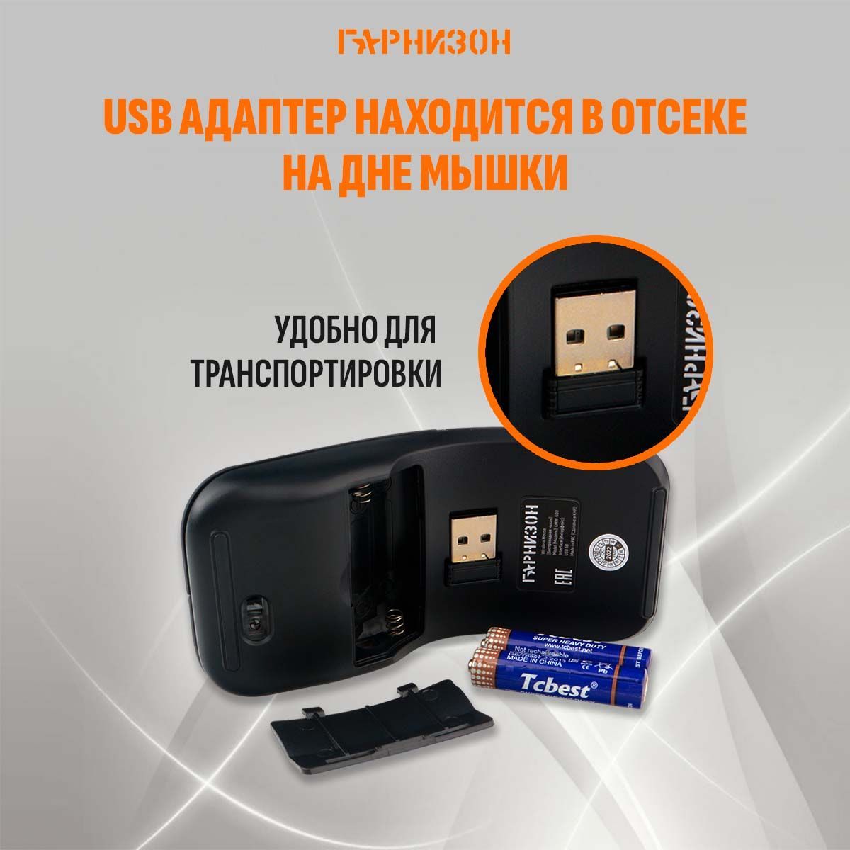 Описание: Мышь компьютерная беспроводная Гарнизон. USB адаптер расположен на нижней панели компьютерной мышки в специальном пазу. Мышь беспроводная имеет симметричную форму и подходит как для левшей, так и для правшей. Мышка компьютерная имеет трехуровневую систему энергосбережения.