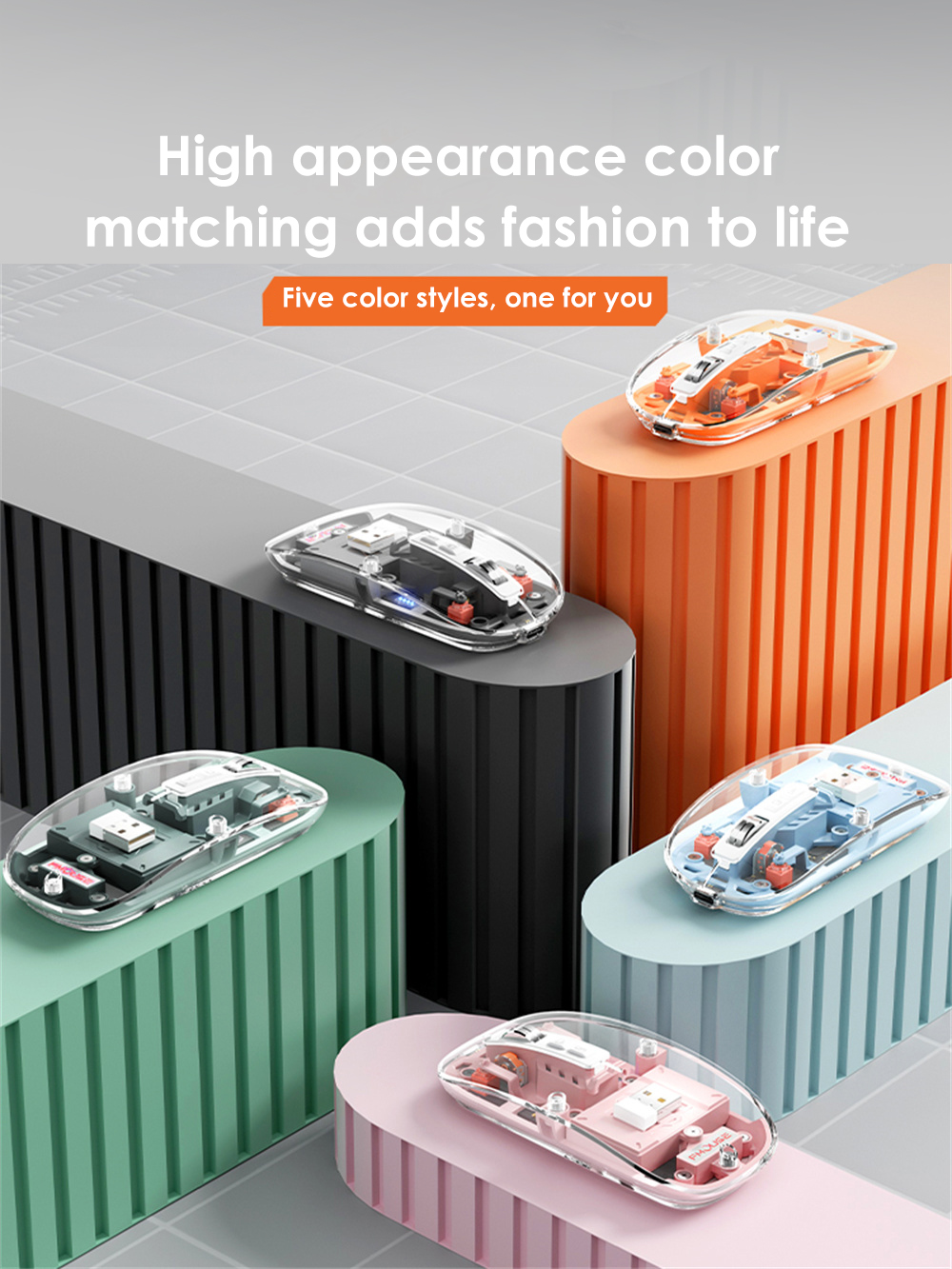 Трехрежимная беспроводная мышь RYRA, совместимая с Bluetooth, прозрачная мышь M133, перезаряжаемая Бесшумная для девочек для планшета, ноутбука, офиса