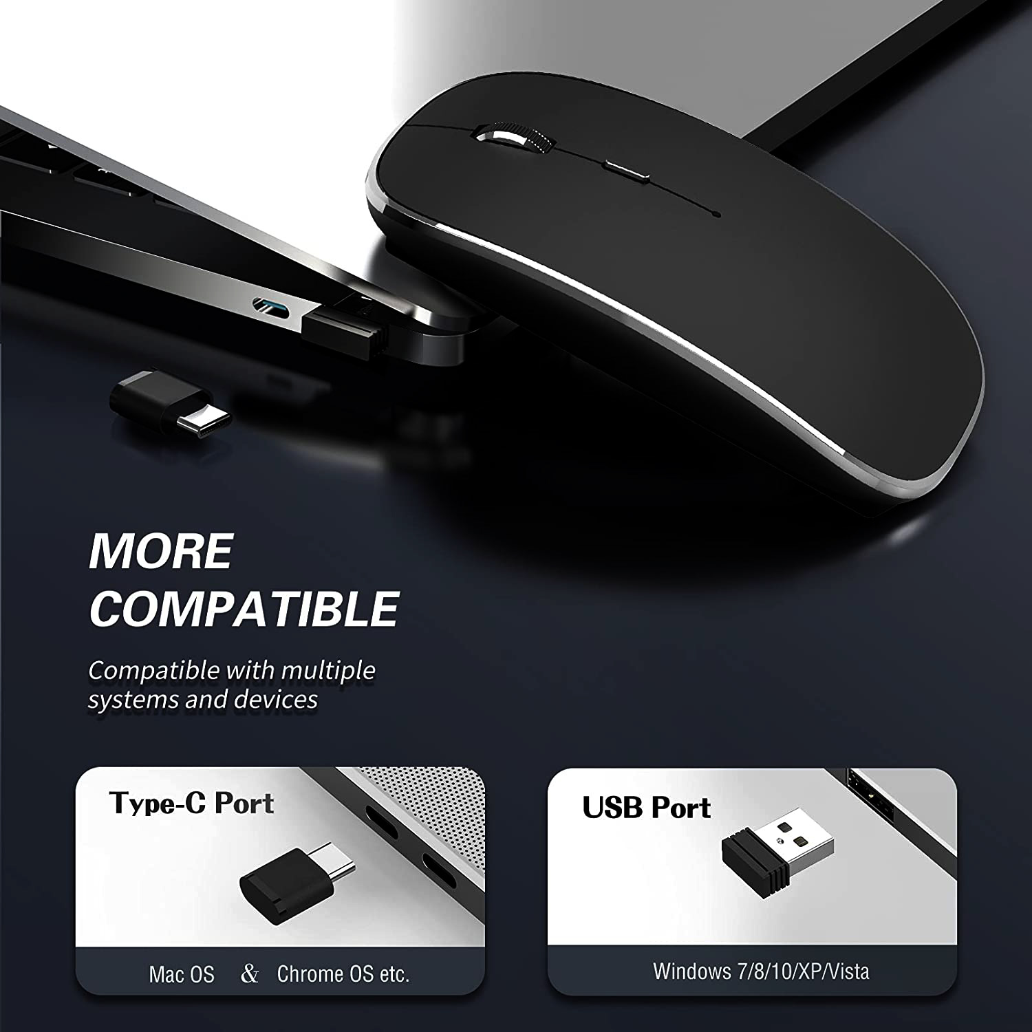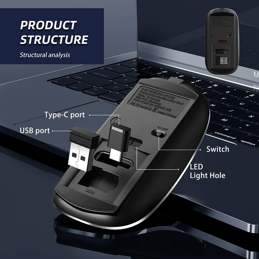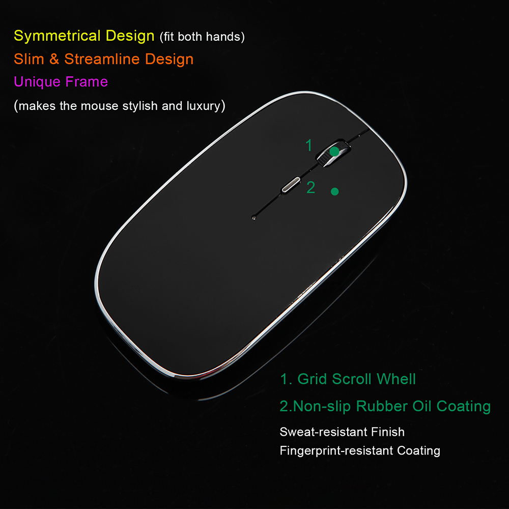 Перезаряжаемая беспроводная мышь-Встроенная прочная литий-ионная аккумуляторная батарея емкостью 450 мА · ч с usb-зарядкой, нет необходимости заменять аккумулятор. Зарядка 2 часа, можно использовать около 60 дней