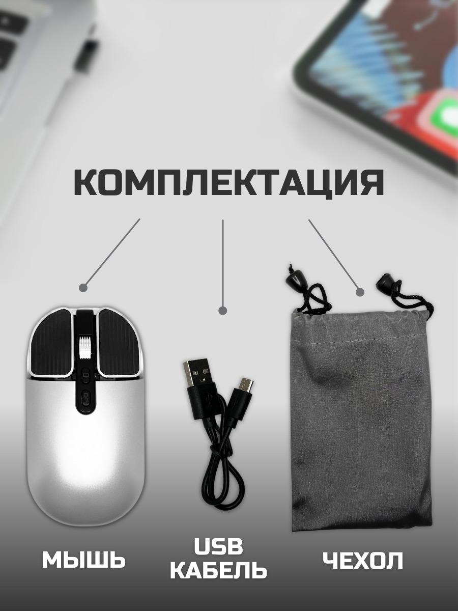 Мышка компьютерная - 1шт, кабель USB - 1шт, USB-передатчик - 1шт., чехол для путешествий - 1шт.