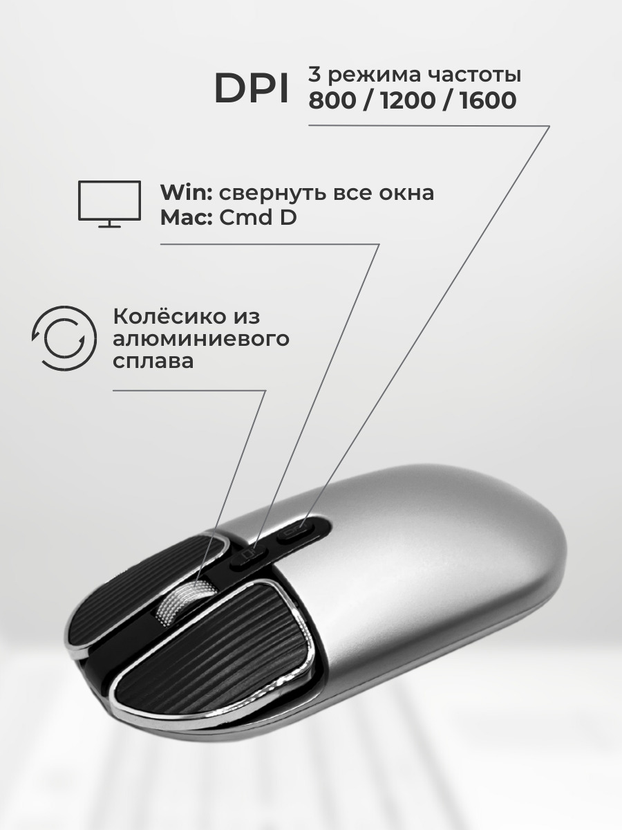 Особенности: Колесо прокрутки, Аккумулятор, Спящий режим, Тефлоновые ножки
