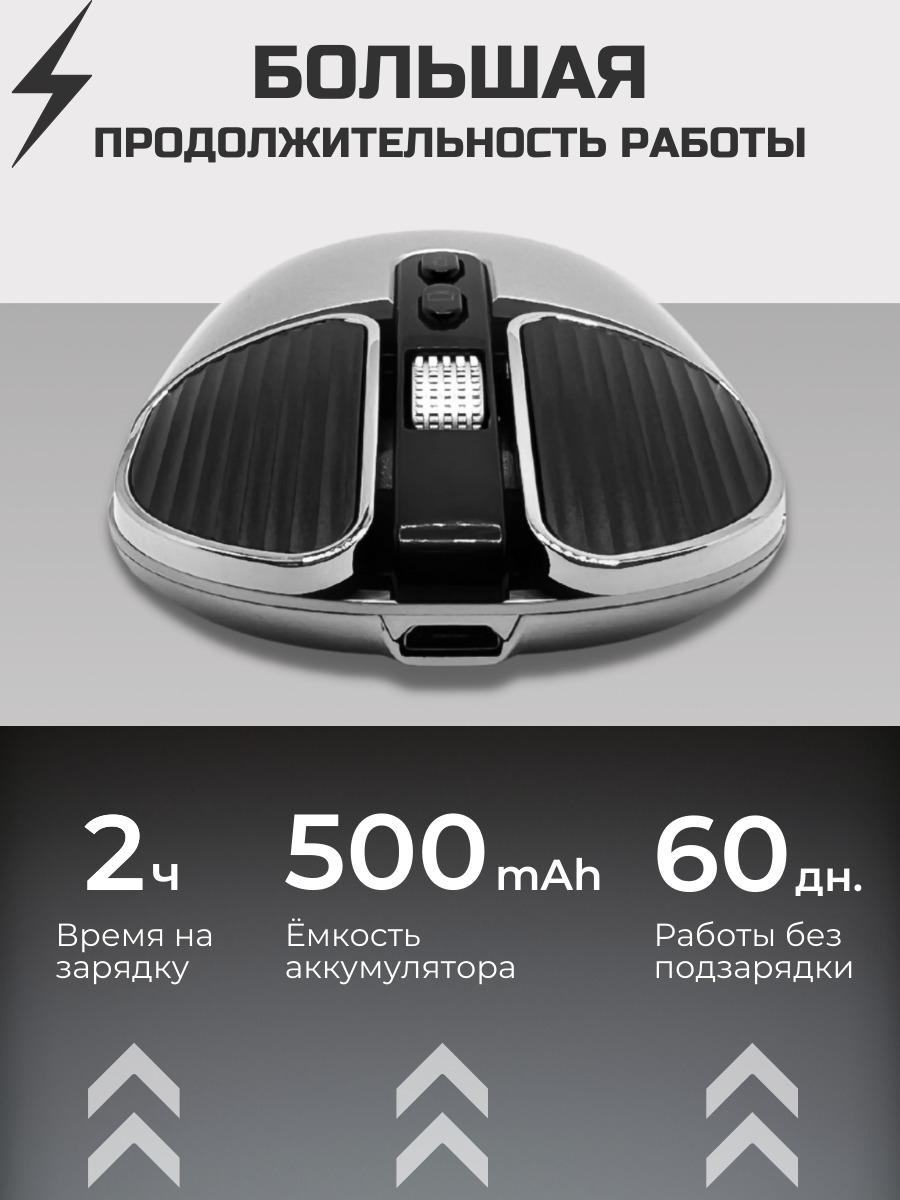 Идеально подходит для средней руки, удобно работать как левой, так и правой рукой. Заряжать мышку рекомендуется от компьютера или ноутбука.