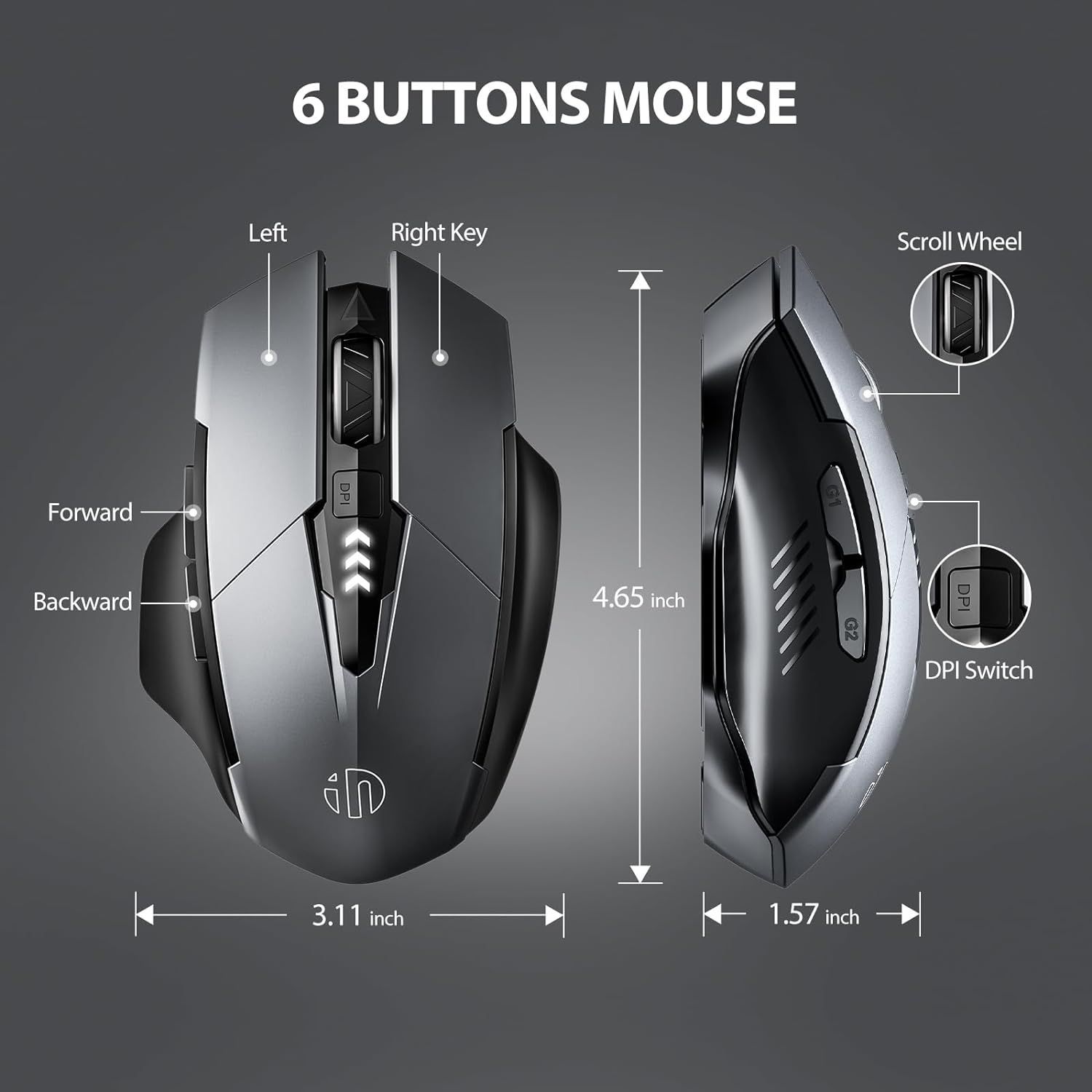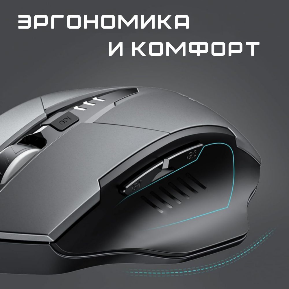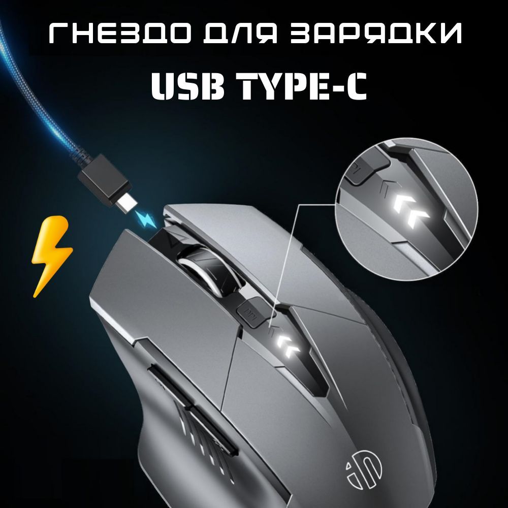 Беспроводная оптическая аккумуляторная компьютерная мышь inphic A1 / Бесшумная беспроводная мышь /6 кнопок / USB Bluetooth / Dpi 1000,1200,1600