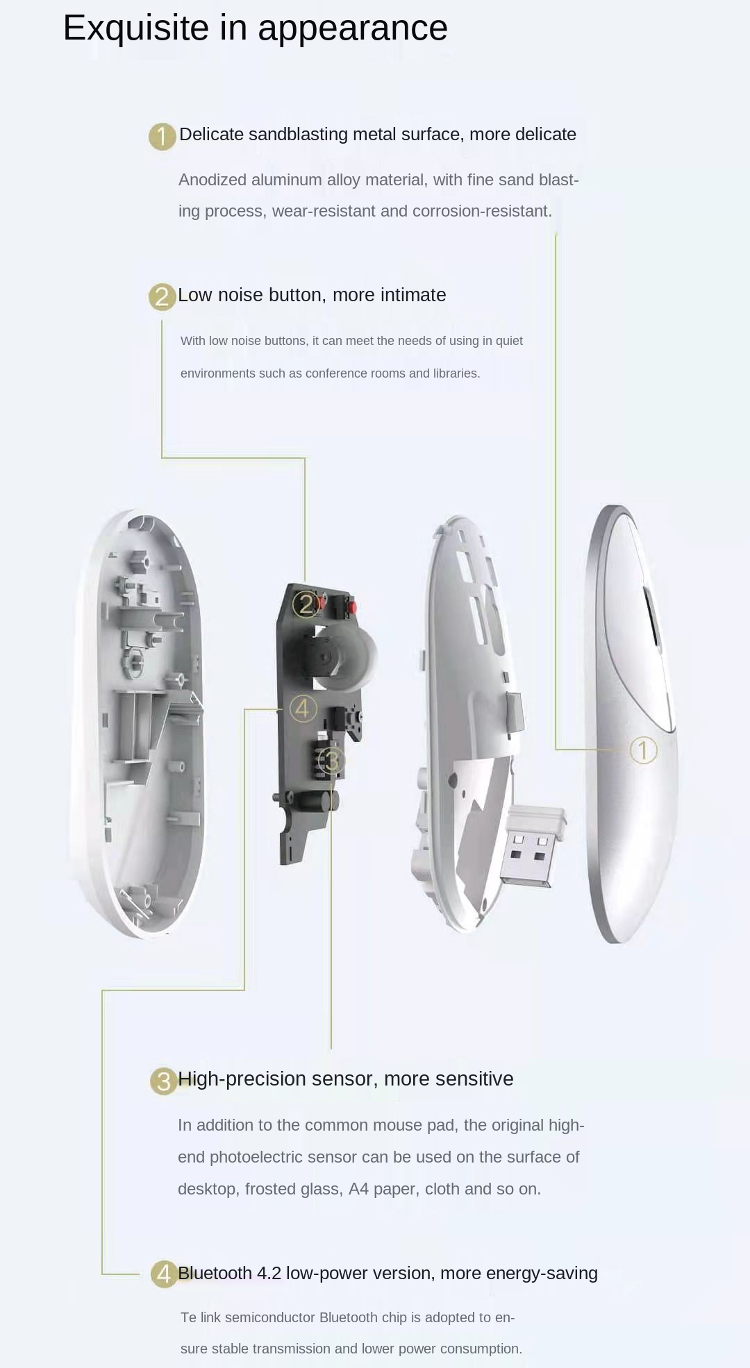 Продолжение дизайна беспроводной мыши, минималистичный дизайн, удобный и тихий, удобный захват, легкий и трудосберегающий, безопасность материалов