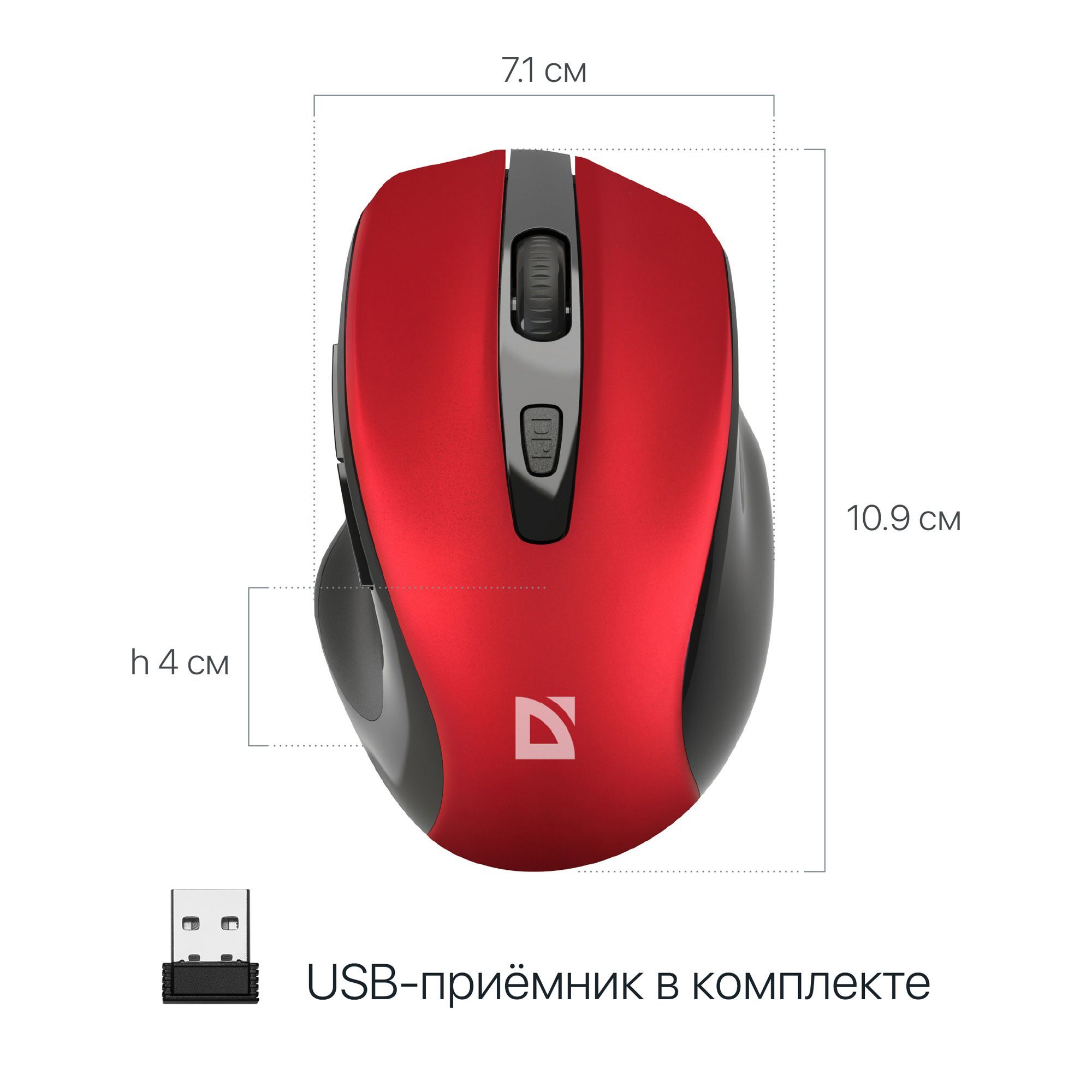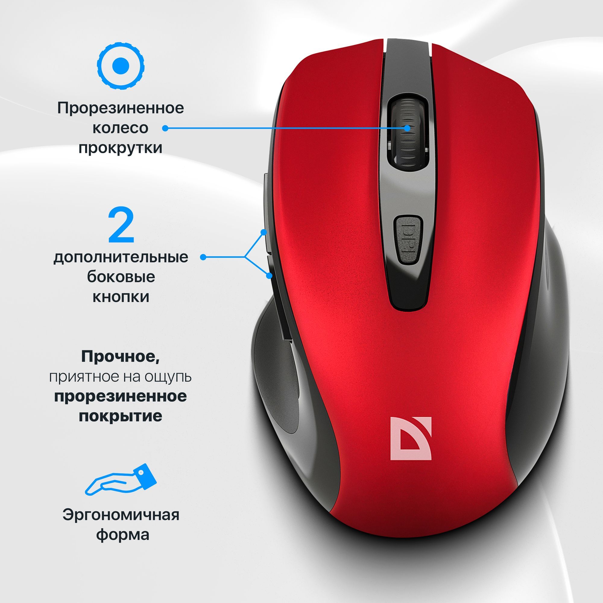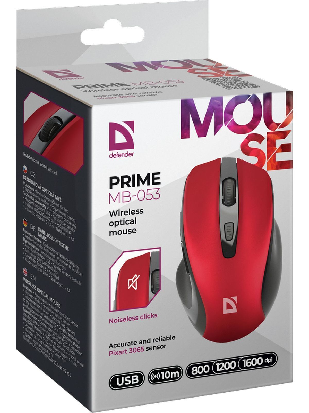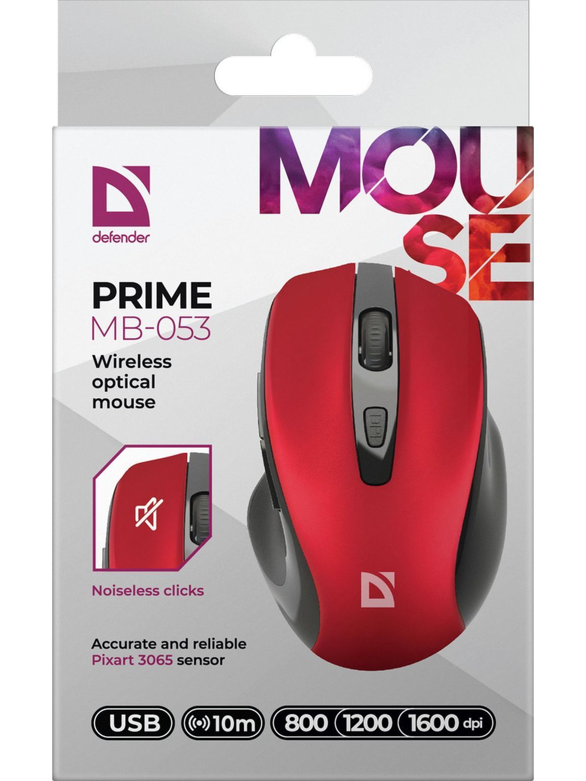 Описание: Беспроводная оптическая мышь Defender Prime MB-053 красный,6D,800-1600dpi,бесшумная: