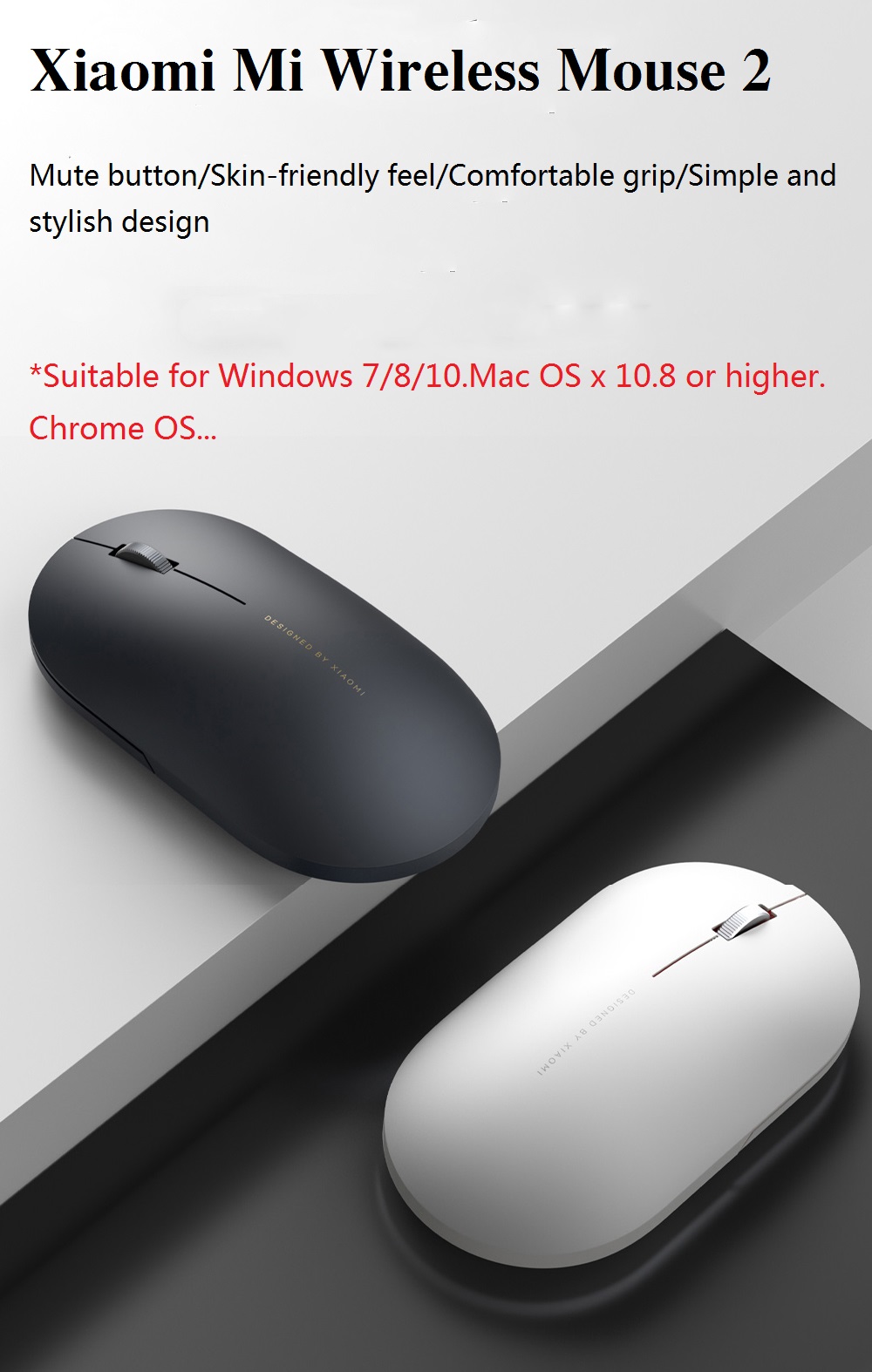Беспроводная мышь Xiaomi 2 простой дизайн снова обновлен, используя симметричный дизайн, как левая, так и правая руки могут быть гибкими в эксплуатации. Доступны черный и белый цвета, а разные цвета показывают разные стили.