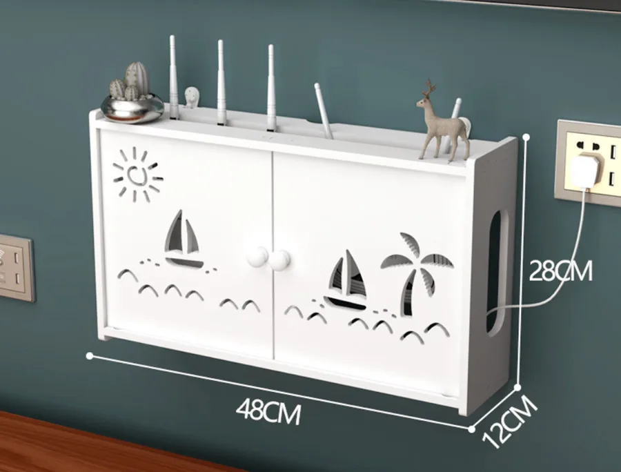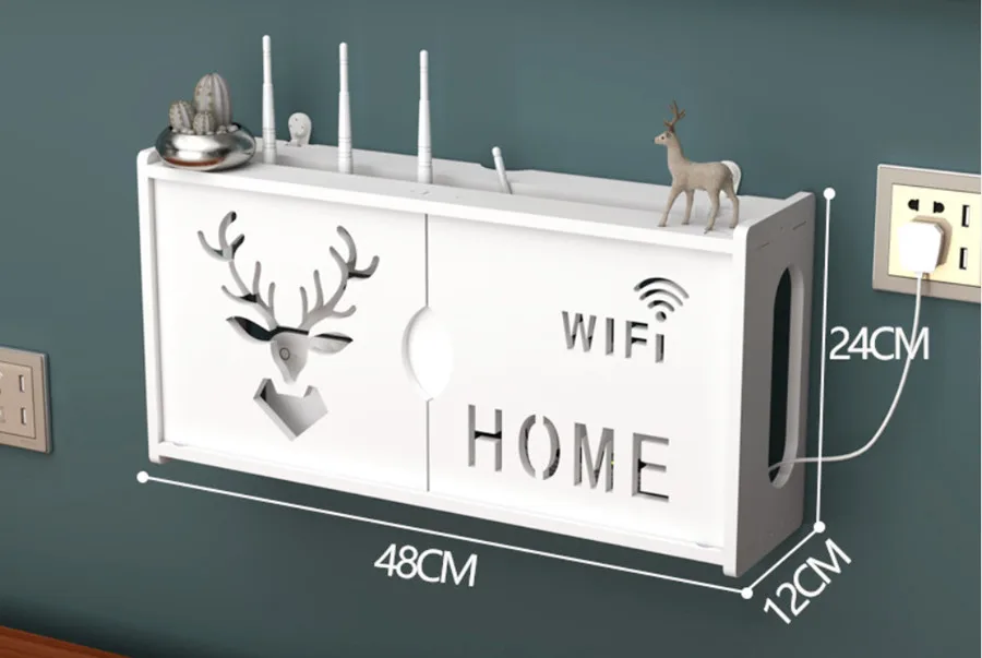 Большой беспроводной Wi-Fi Маршрутизатор Полка ящики для хранения кабель питание плюс провод кронштейн древесно-пластиковый настенный штекер доска DIY домашний декор
