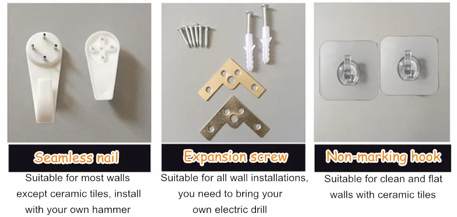 Подходит для большинства стен, кроме керамической плитки, устанавливается собственным молотком
