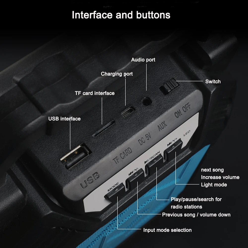 Feature4 Support bluetooth/aux/usb/tf/fm playback.