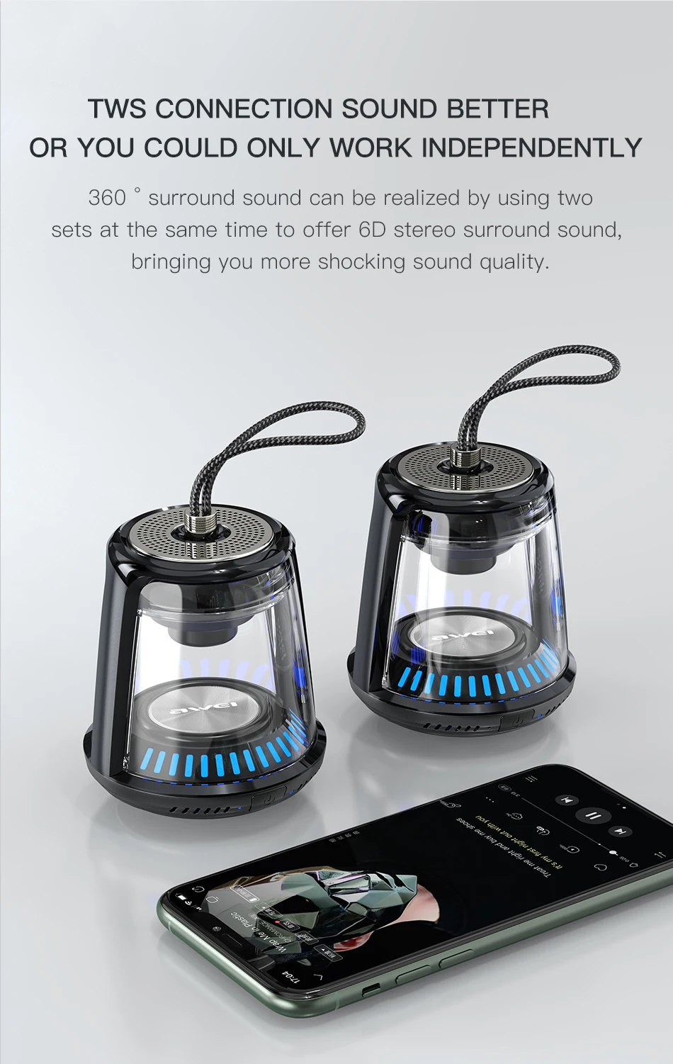 Беспроводная портативная Bluetooth-колонка TWS черного цвета