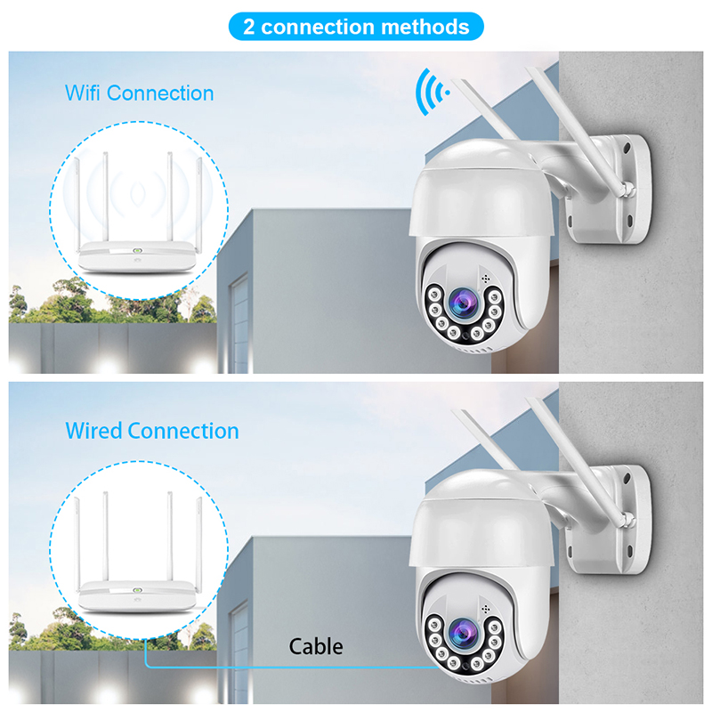 Камера может быть подключена через беспроводной или проводной кабель к маршрутизатору через RJ45, а поддержка canemra подключается к Mini NVR, если вам нужна система камеры видеонаблюдения, вы можете купить NVR,