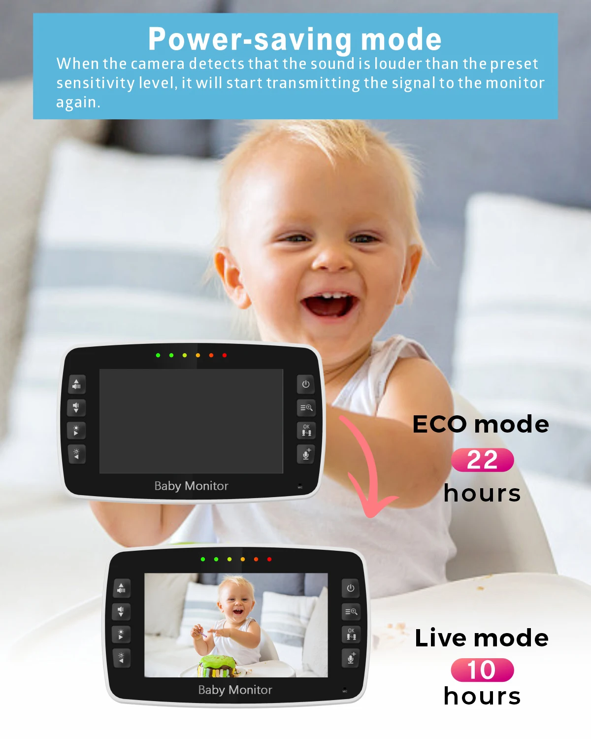• 【 4,3 ''IPS-экран с 2-кратным зуммированием 】-Большой цветной экран с разрешением 4,3'' IPS в сочетании с резкими изображениями с 10-кратными деталями и увеличенным экраном с 2-кратной площадью дисплея, чем у обычного 3,5 ”480P LCD Baby мониторы, позволяя вам более четко следить за своим ребенком. Нужно посмотреть поближе? Радионяня bonoch с возможностью увеличения от 1x до 2x поможет вам увидеть вашего ребенка вблизи. (* Примечание: Перед использованием рекомендуется удалить устойчивую к царапинам защитную пленку экрана.)