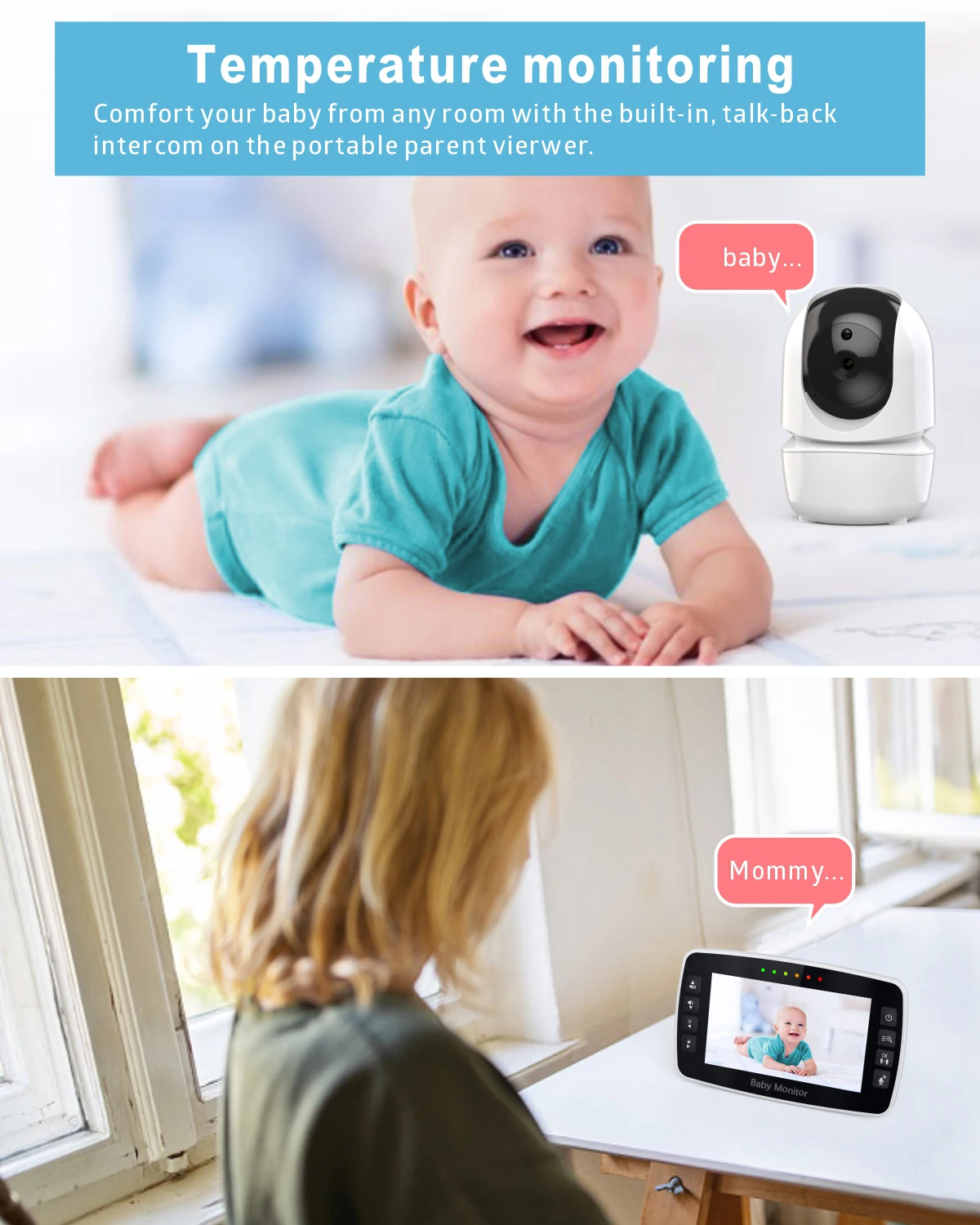 • 【Звук и определение температуры в реальном времени 】-Благодаря чувствительному и четкому микрофону вы сразу же получаете мгновенные оповещения от родительского устройства, когда ваш ребенок плачет. Дисплей температуры в помещении позволяет узнать, комфортно ли вашему ребенку. Чувствуйте больше спокойствия, когда готовите, убираете, работаете или отдыхаете в другой комнате.