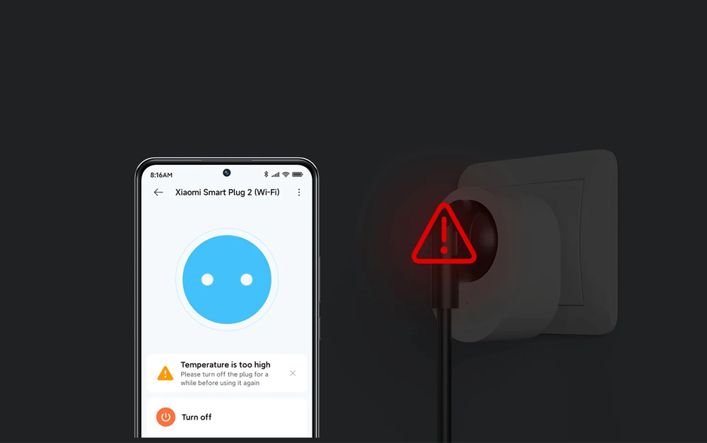 * Защита от перегрева: когда внутренняя температура умной вилки выше, чем значение защиты от перегрева, питание умной вилки будет отключено, и приложение Xiaomi Home отправит вам уведомление. Когда внутренняя температура Smart Plug приближается к значению защиты от перегрева, приложение Xiaomi Home отправит вам уведомление, но Smart Plug останется включенным.
