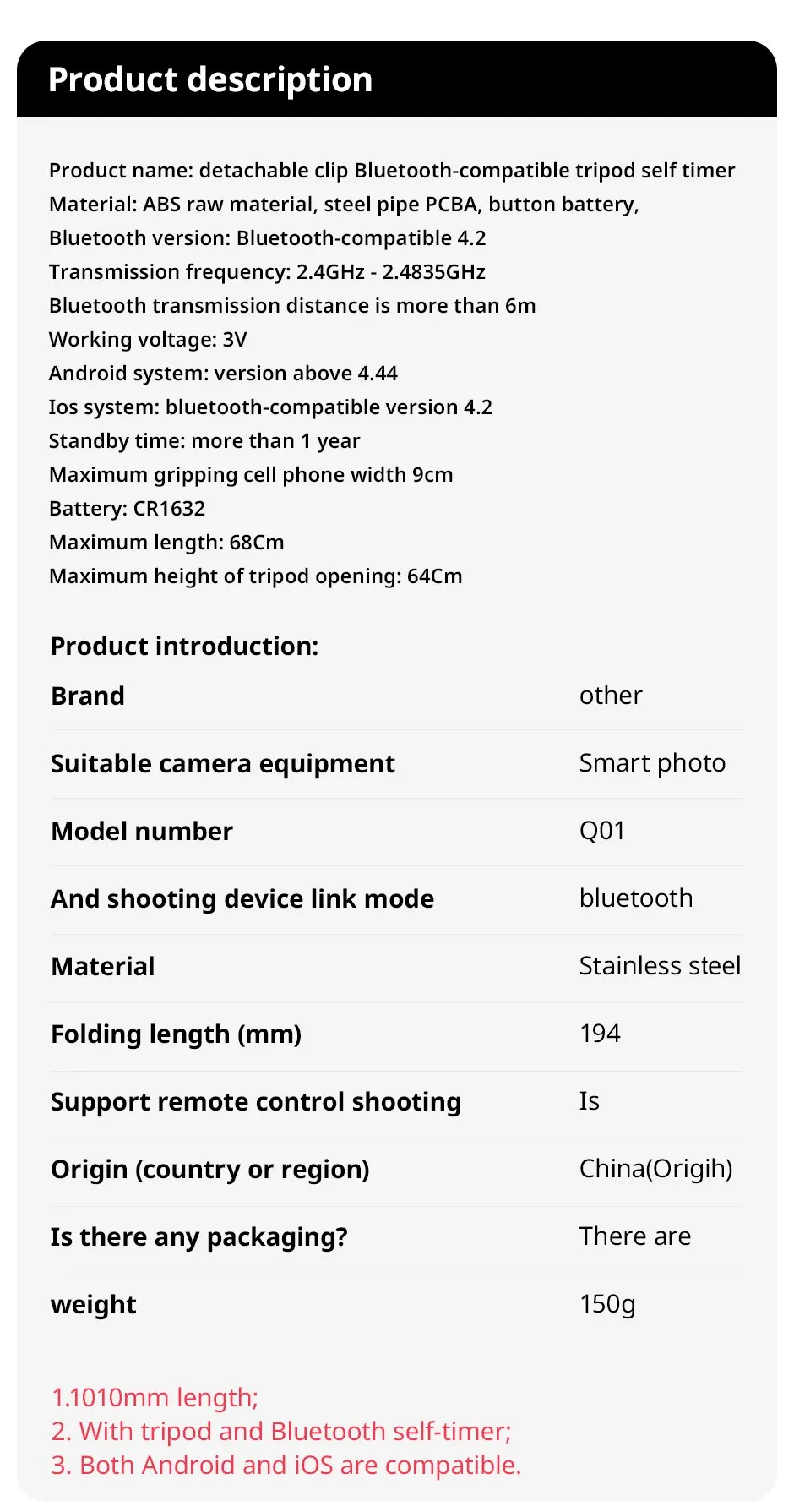 • Совместимость со смартфонами :Предназначен для большинства смартфонов для универсального использования.