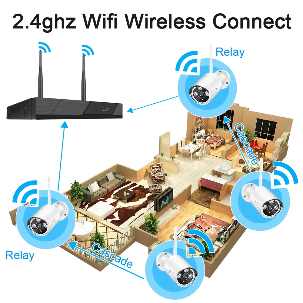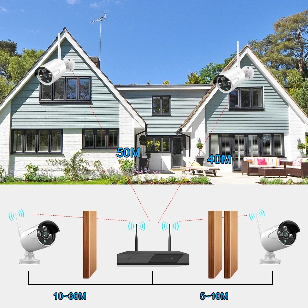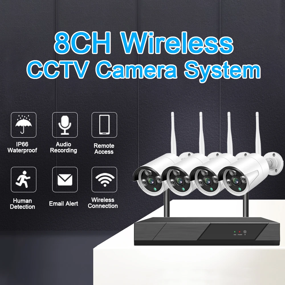 Беспроводная система видеонаблюдения KMAKOOK, 5 МП, 8 каналов, 1920P, наружная водонепроницаемая IP-камера безопасности с Wi-Fi, комплект видеонаблюдения P2P с аудиозаписью
