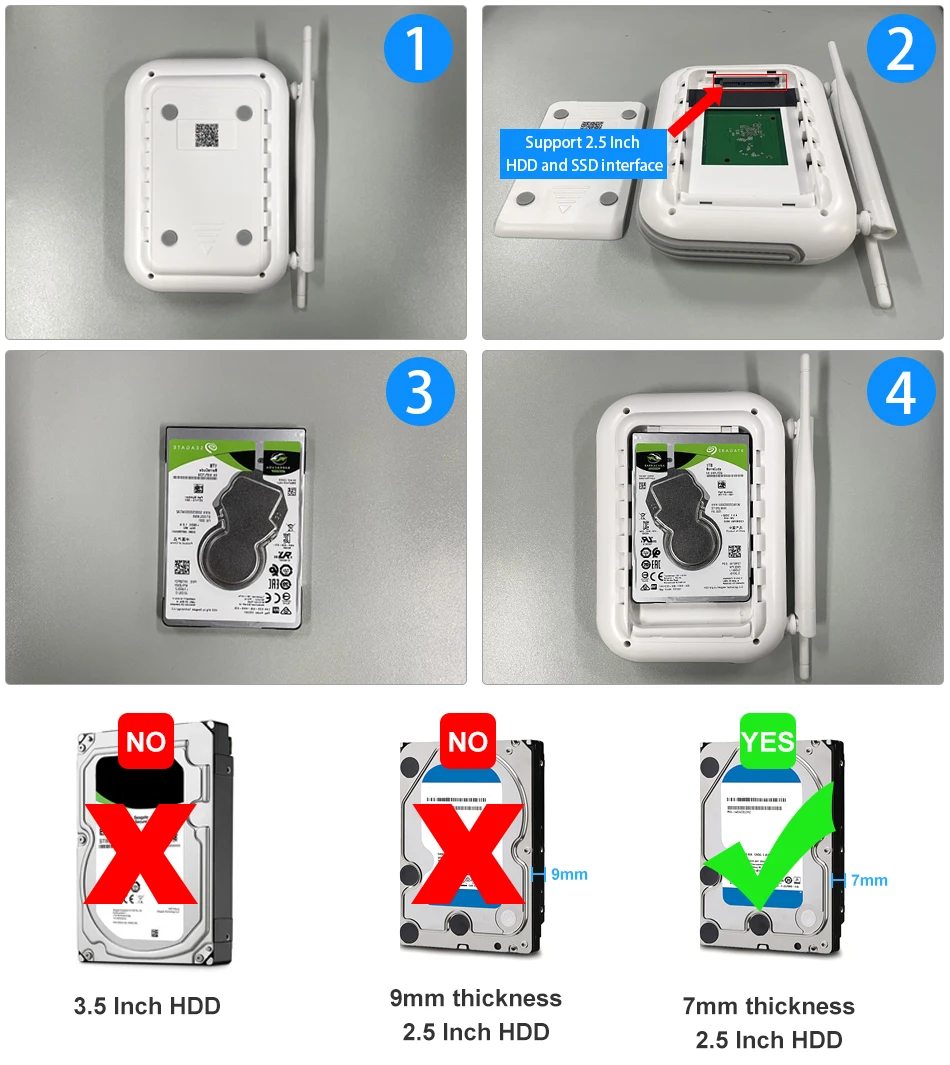 Максимальная поддержка 128G tf-карты и поддержка 2,5 дюйма SATA HDD и SSD интерфейса.