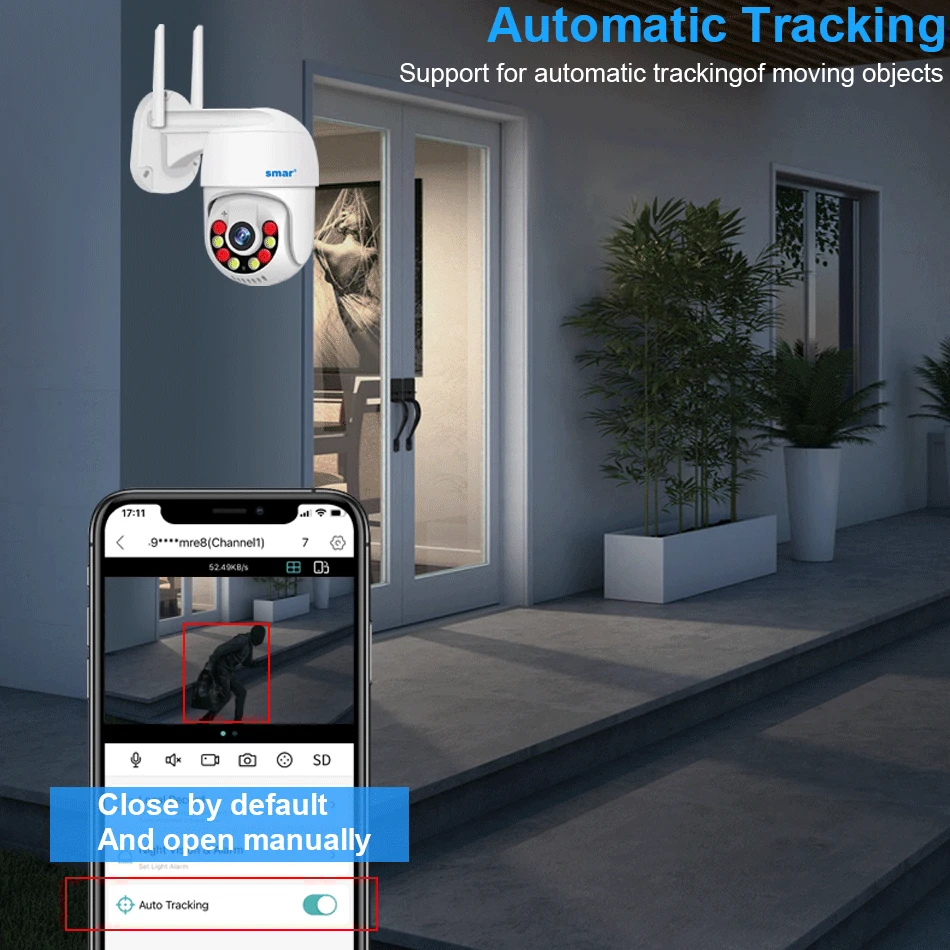 Когда камера обнаруживает движущийся объект, камера автоматически отслеживает движущийся объект, не пропуская никаких подозрительных следов.
