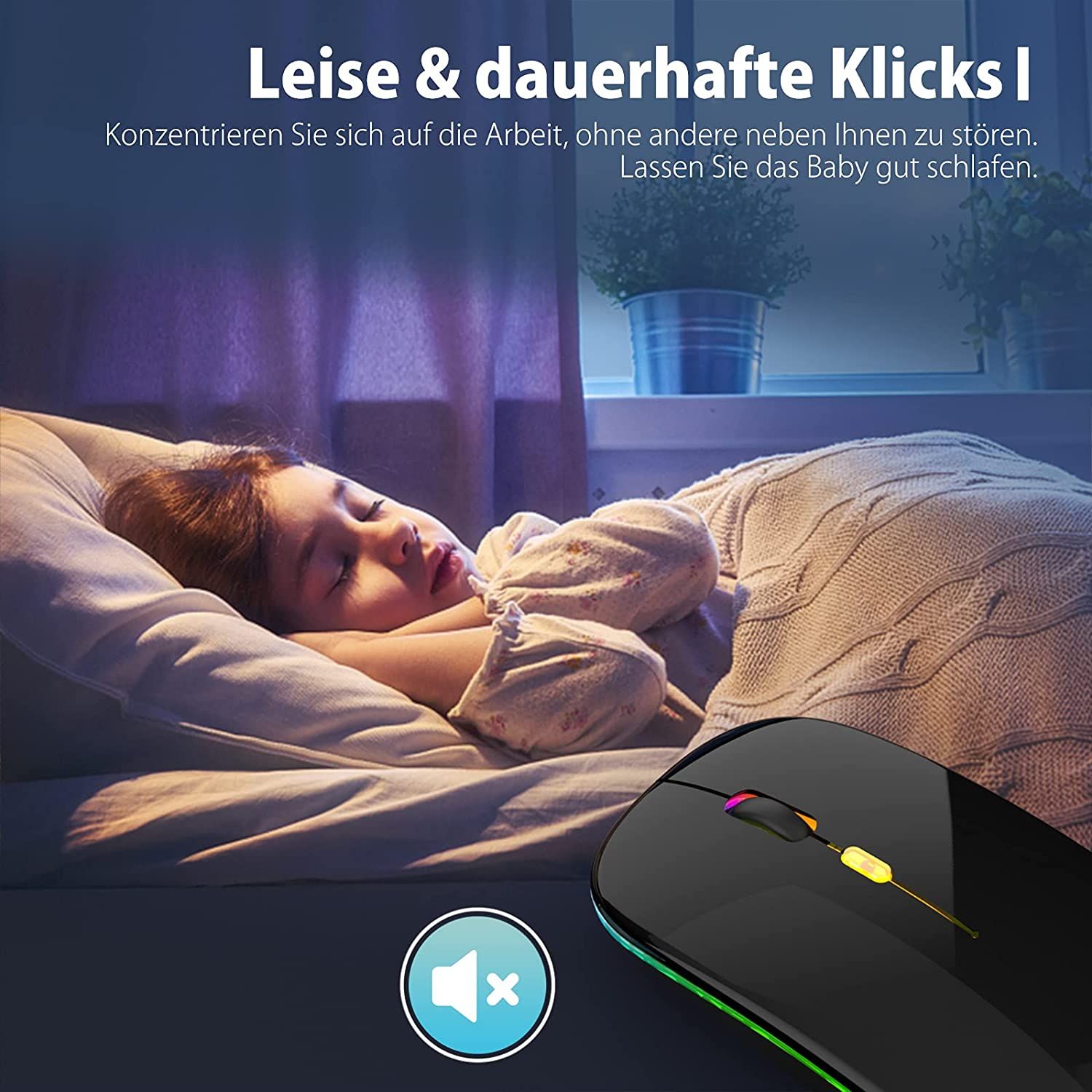 Тихий щелчок, удобная рука: Беспроводная мышь, эргономичный дизайн, подходит как для левой, так и для правой руки. Бесшумная мышь с покрытием, защищающим от отпечатков пальцев, обеспечивает максимальное сцепление и комфорт для ваших рук, не прилипая, даже когда вы потеете. Кнопка отключения звука снижает уровень шума на 90 %, поэтому вам не нужно беспокоиться о том, что вы побеспокоите других.