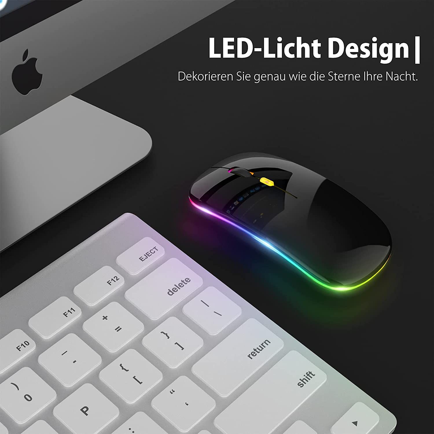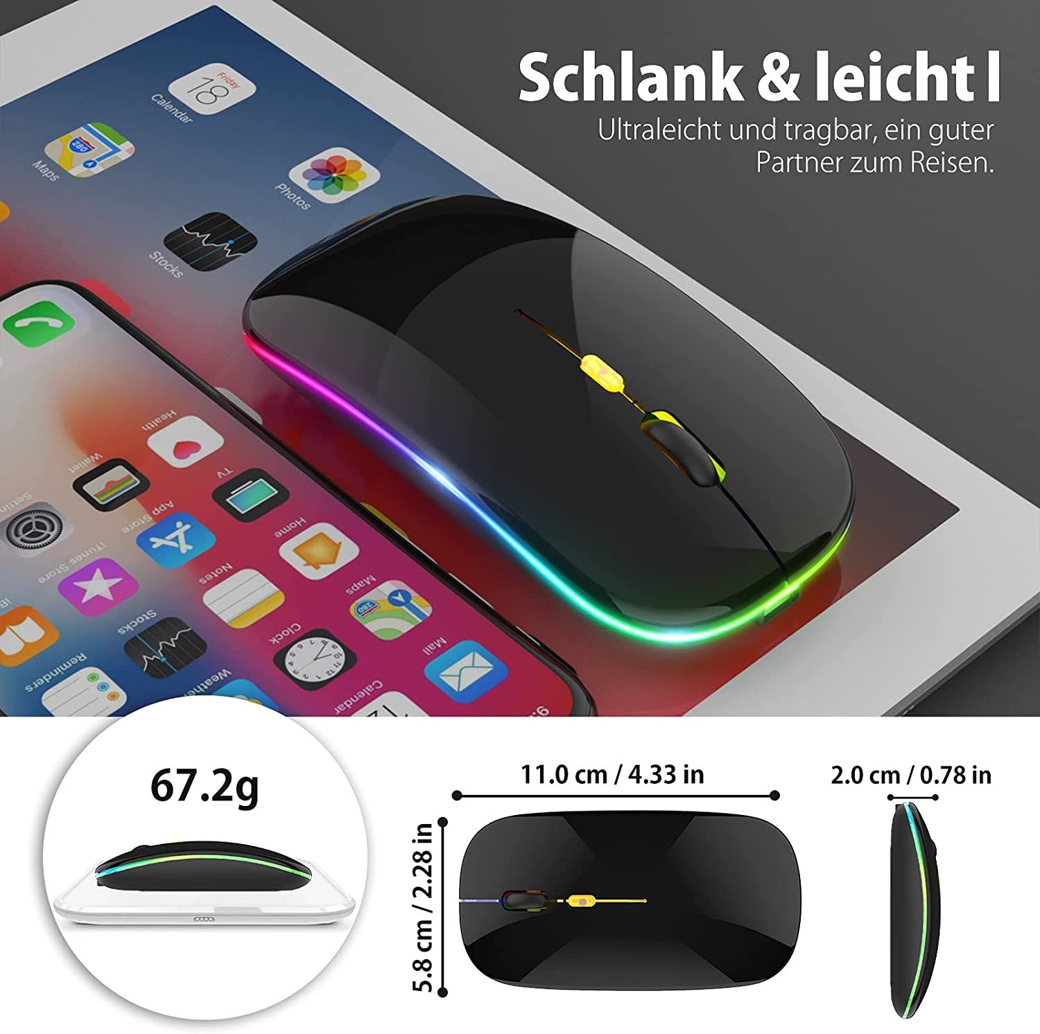 Улучшенный дизайн светодиодов: беспроводная мышь, 7 различных цветов, случайным образом меняющихся во время использования, обеспечивают успокаивающие световые эффекты, создают прохладную и утонченную атмосферу для работы и игр. Выключайте светодиодный индикатор мыши, когда она не используется, для экономии энергии.