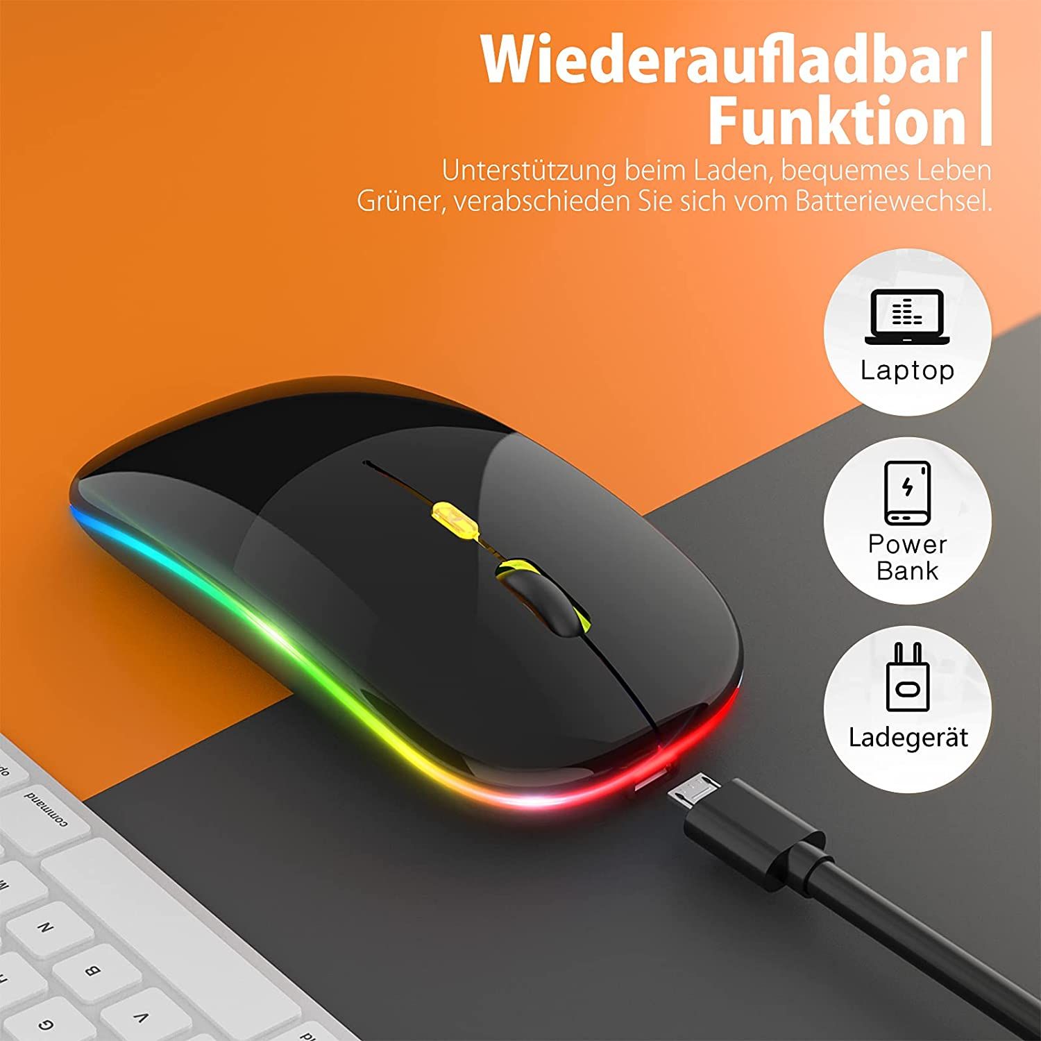 Перезаряжаемый и энергосберегающий: встроенный перезаряжаемый аккумулятор, нет необходимости заменять аккумулятор. Беспроводная мышь поставляется с USB-кабелем для зарядки, который также можно использовать во время зарядки. Мышь переходит в спящий режим через 8 минут бездействия. Зарядка занимает около 2 часов всего за 2 часа. 15-20 дней.