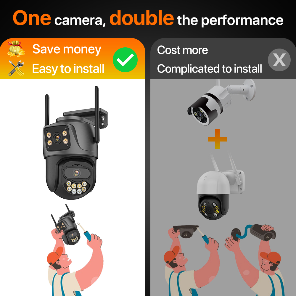 -С помощью всего одной камеры вы можете наслаждаться эффектом мониторинга в реальном времени нескольких камер. Вам не нужно заказывать другие камеры для просмотра большего количества изображений, что может сэкономить деньги.