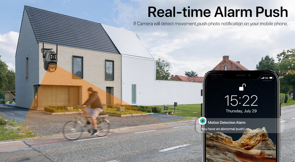 -Защитите свой дом каждый день, при обнаружении движения уведомление о тревоге будет быстро отправлено на ваш телефон.