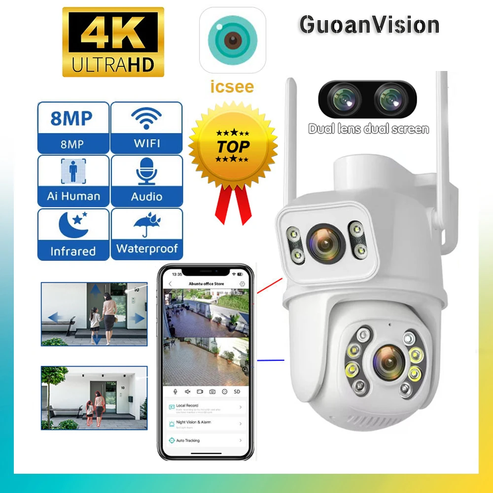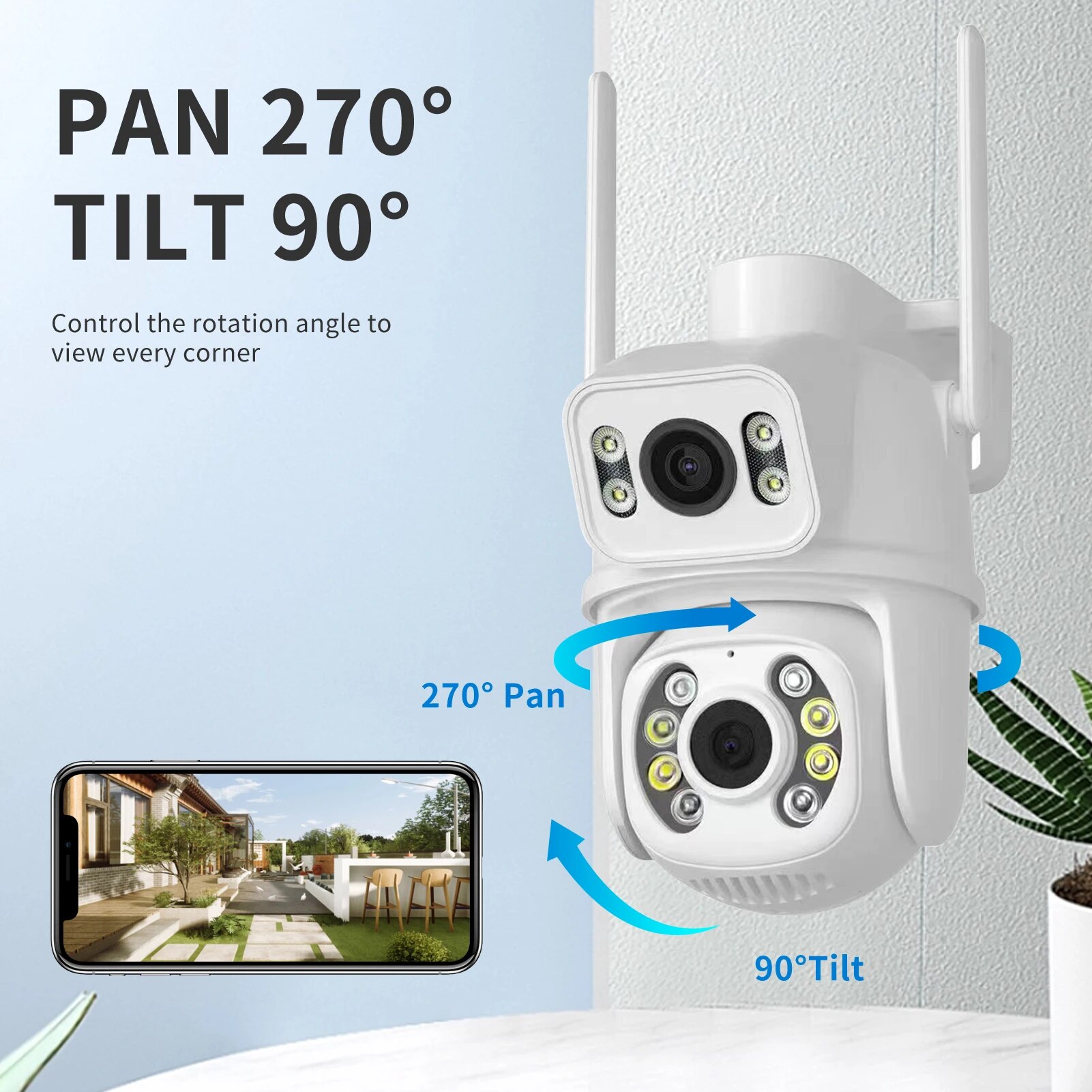 6MP 4K PTZ Wifi-камера с двойным объективом и двойным экраном Ai Обнаружение человека Автоматическое отслеживание Беспроводная наружная камера наблюдения