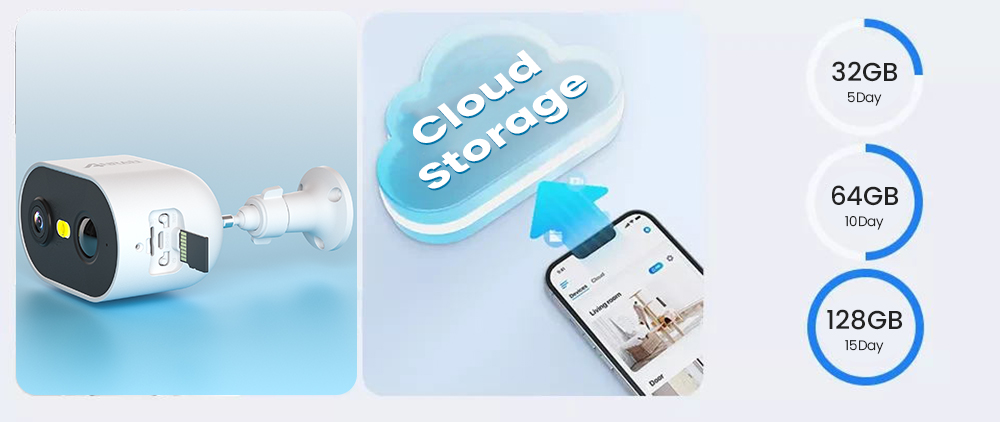 Камера поддерживает использование SD-карты/облачного хранилища для хранения видео. Вы можете выбрать способ сохранения видео в соответствии с вашими потребностями!