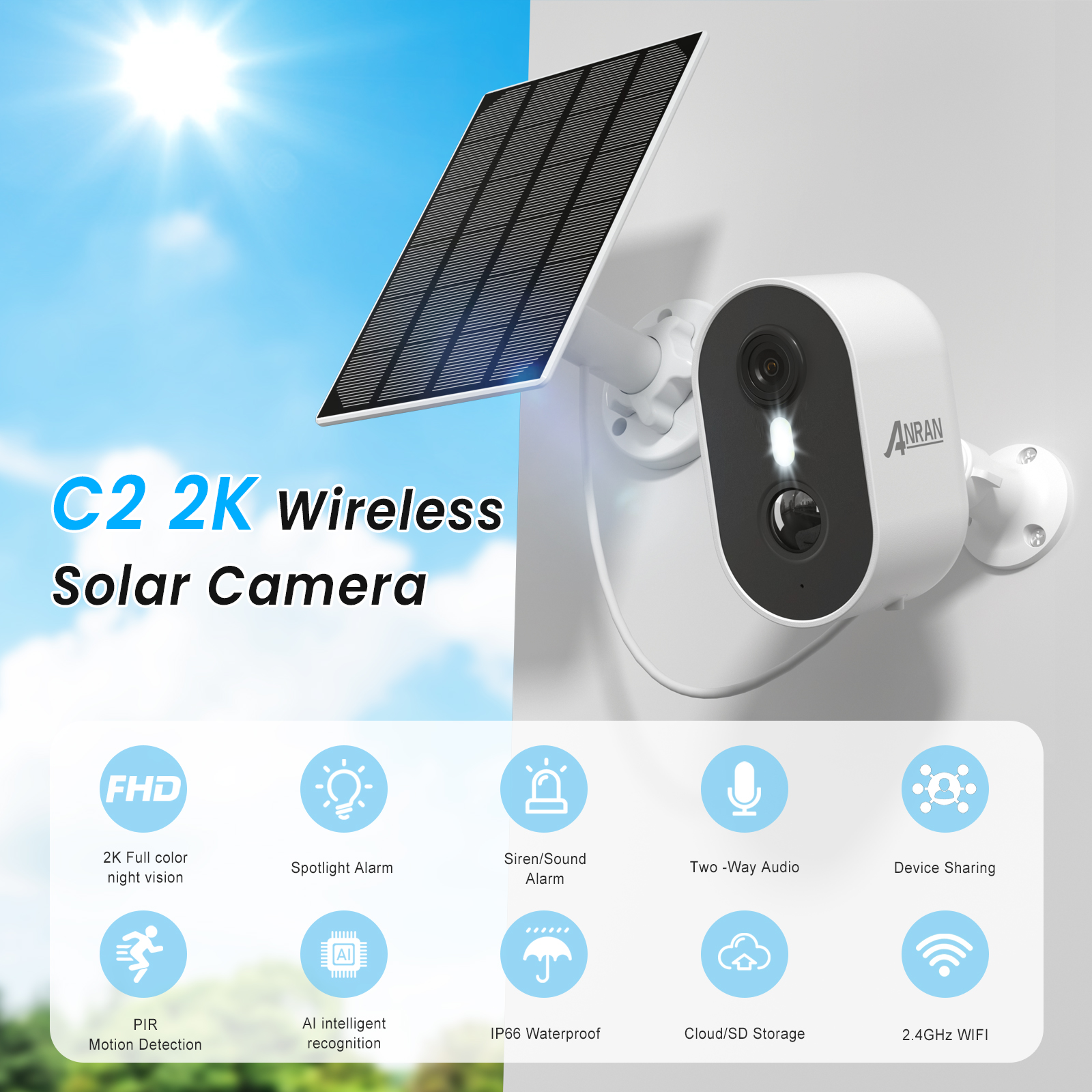 Беспроводная уличная камера видеонаблюдения ANRAN 2K 3 Мп с функцией ночного видения