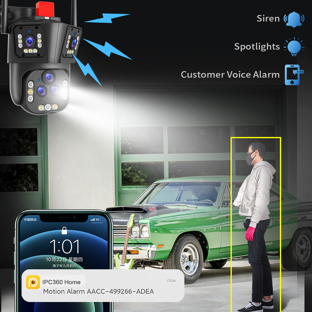 После блокировки цели камера автоматически регулирует перевод и вращение, отслеживает движущиеся объекты, автомобили, домашних животных и людей и отправляет уведомления о тревоге на смартфон.