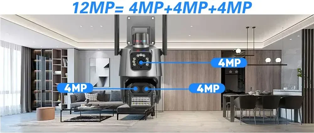 Беспроводная уличная камера видеонаблюдения с тремя объективами, 12 МП