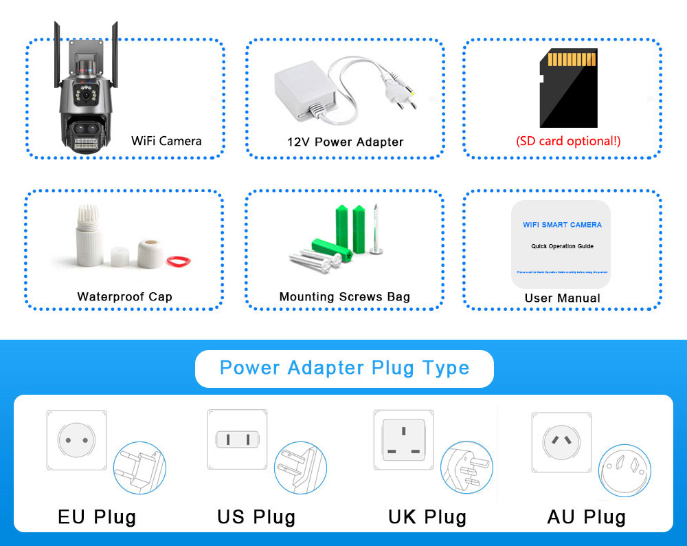 2. 12MP Ультра HD WIFI IP-камера, пластик ABS, IP66 водонепроницаемый и пыленепроницаемый, подходит для внутренней и наружной, надежной домашней безопасности;