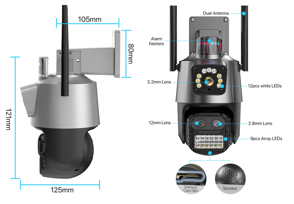 Двойные экраны, мониторинг нескольких мест одновременно, без слепых зон. Три объектива и 8-кратный цифровой зум. Запись видео более четкая.