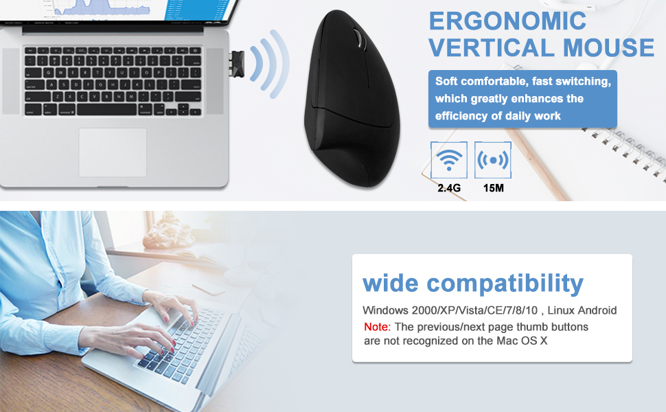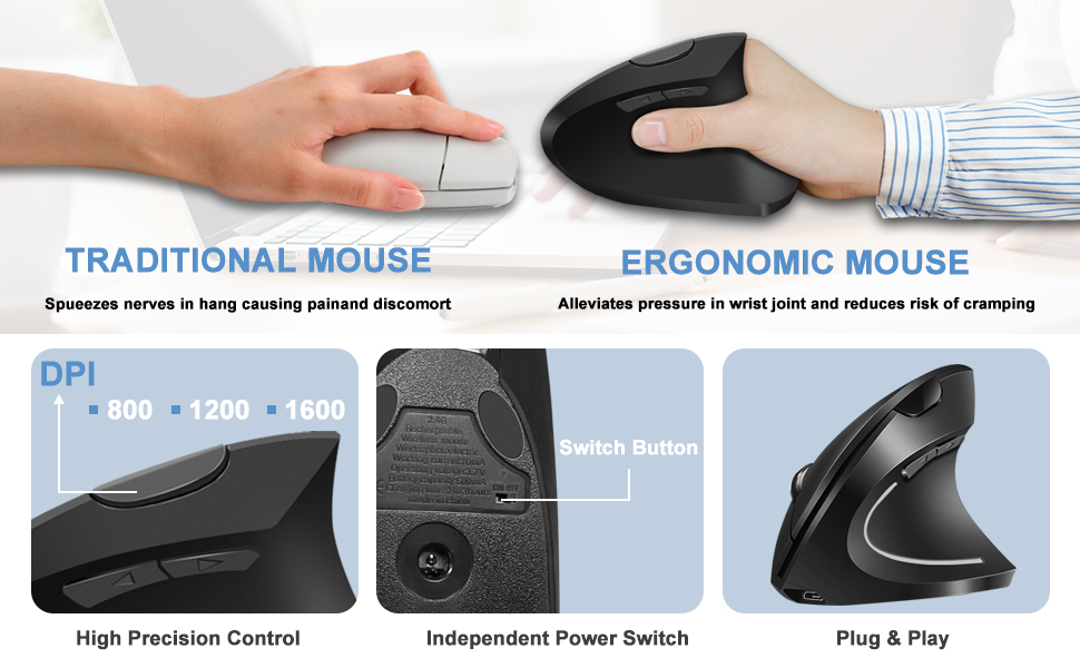 Эта мышь полна жизненной силы, инноваций и имеет много преимуществ для здоровья. Изменяя способ использования запястья и рук, вы эффективно Уменьшите боль и дискомфорт. Добавьте резиновое масляное покрытие, чтобы потные пальцы не скользили. От офиса до игр использование оптической вертикальной мыши удобно и полезно для здоровья.