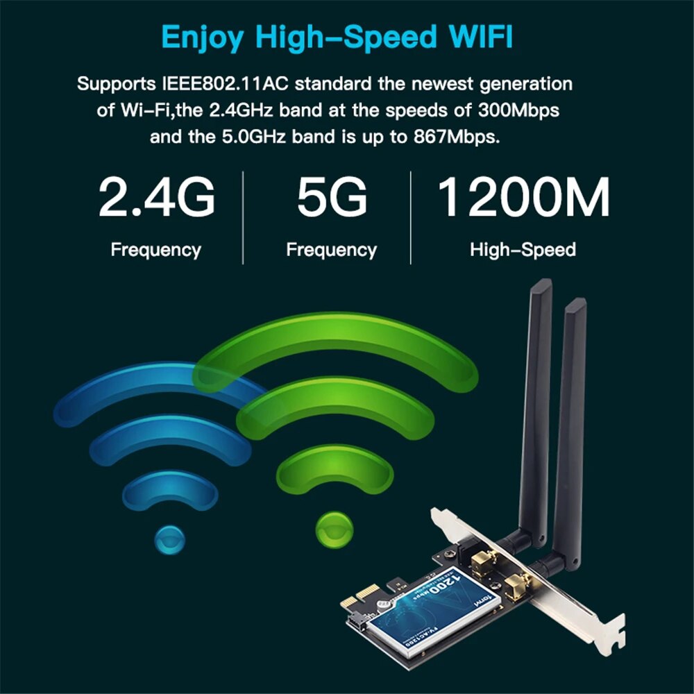 FENVI 1200 Мбит/с Беспроводная WiFi-карта PCIE адаптер FV-AC1200 Двухдиапазонный 2,4 ГГц/5 ГГц 802.11AC для Bluetooth 4,0 WiFi адаптер Win7/10/11