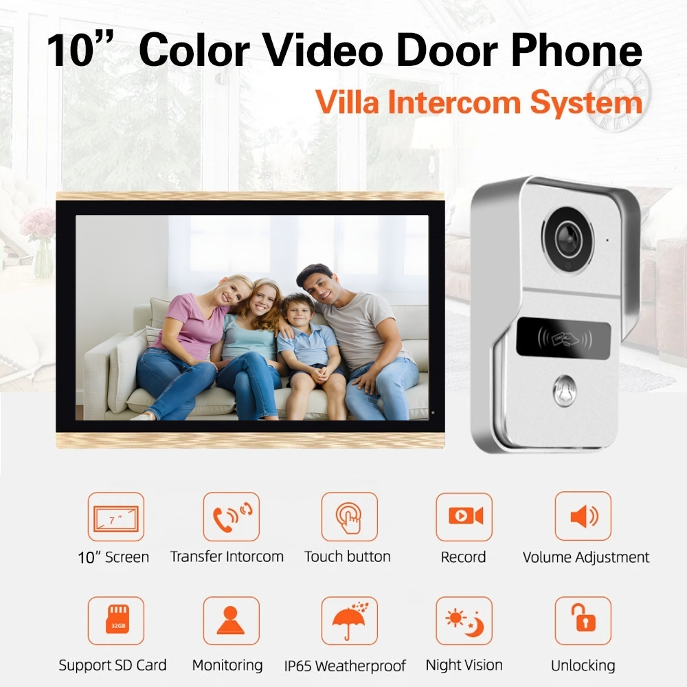 Беспроводная Wi-Fi система видеонаблюдения с дверным звонком, 10 дюймов, 1080P