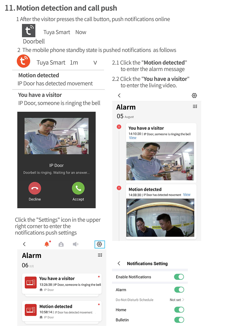 Камера дверного звонка оснащена интеллектуальным обнаружением движения (настраиваемым временем, чувствительностью и включением/выключением), получает оповещения в реальном времени, когда кто-то приближается, чтобы вы никогда не пропустили доставку и не заставили гостей ждать.