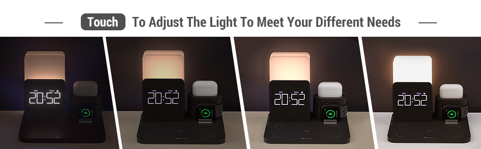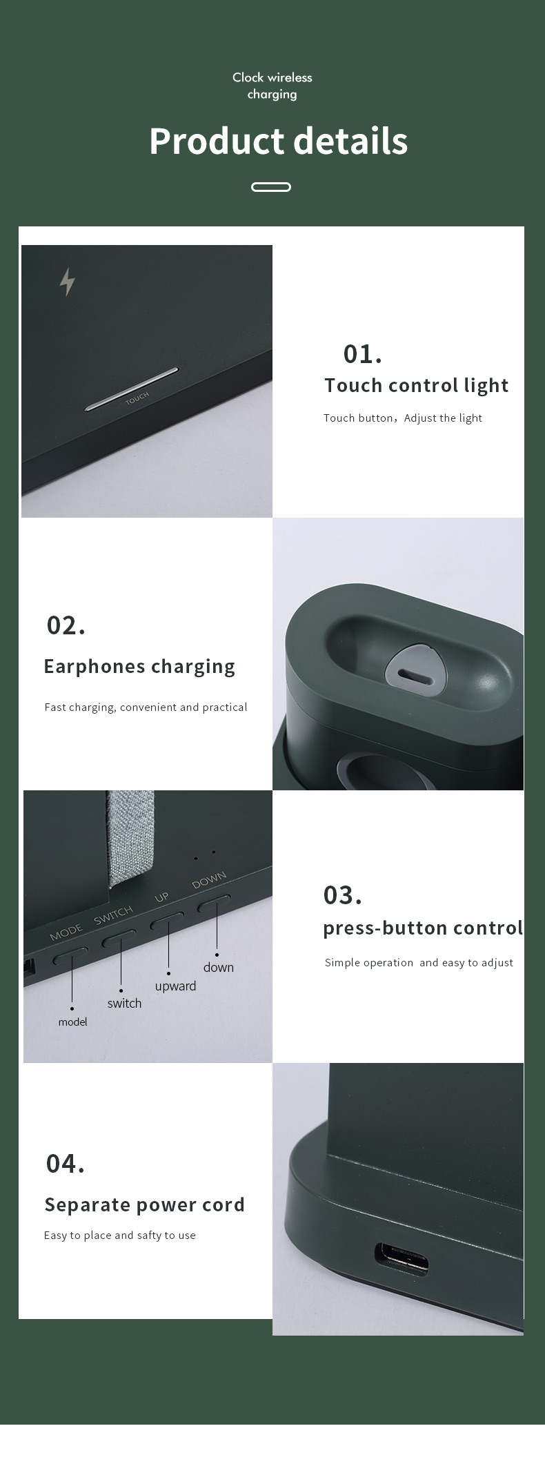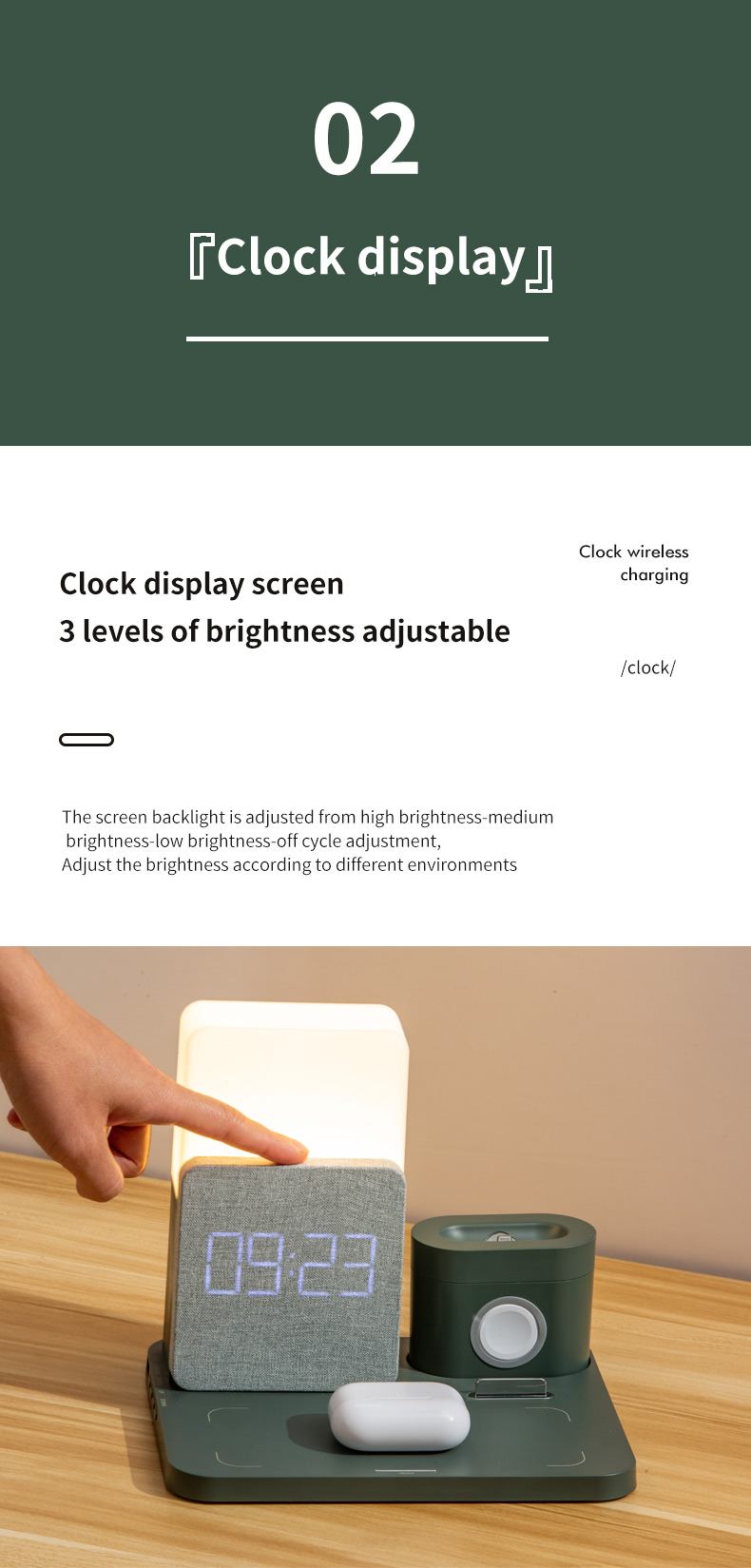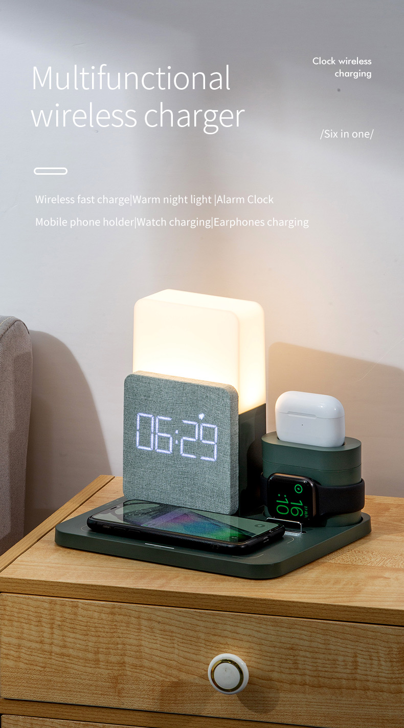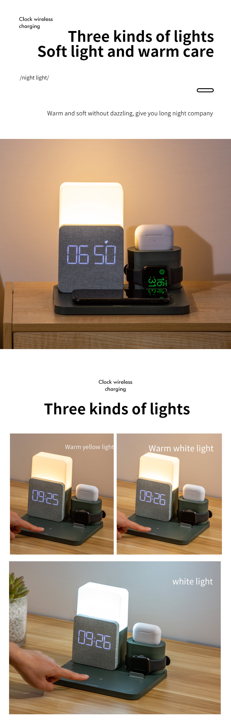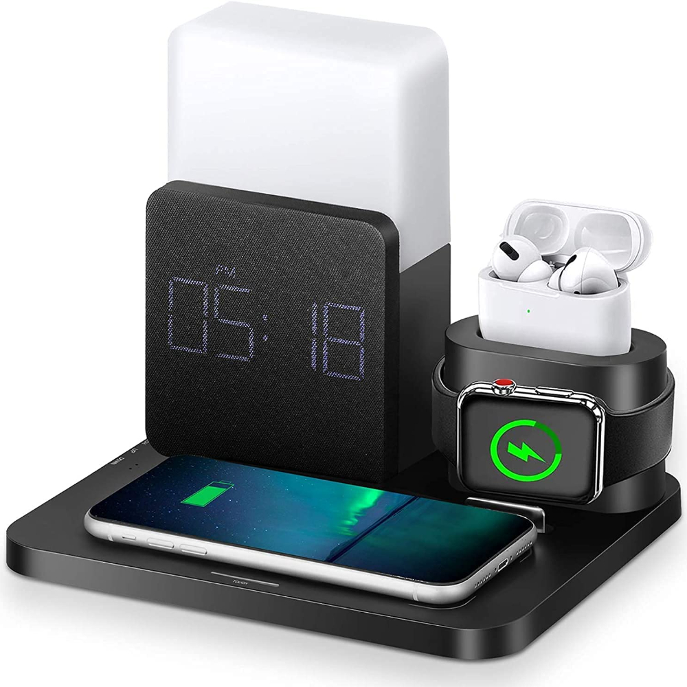 Беспроводная зарядная станция 3 в 1, цифровой будильник с функцией быстрой зарядки, ночник, совместим с IPhone 13, Iwatch/AirPods