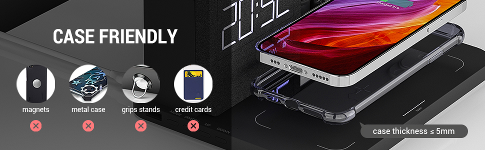 -Универсальная Совместимость: Qi-сертифицирован WPC (Консорциум беспроводного питания) для поддержки беспроводной зарядки на всех устройствах с поддержкой Qi